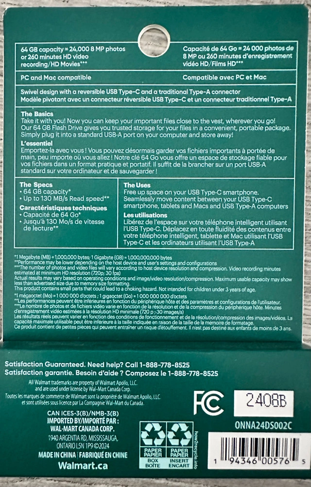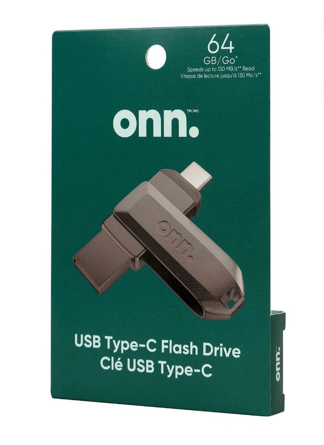 This is a new Onn. 64GB USB Type-C Flash Drive that delivers speeds up to 130 MB/s, allowing for quick and easy transfer of files between your USB Type-C smartphone, tablets, Macs, and USB Type-A computers. This drive is compact, portable and offers ample storage space. Key Features: * 64 GB capacity * Up to 130 MB/s read speed * Compatible with USB Type-C and Type-A ports * Compact and portable design this item is new.