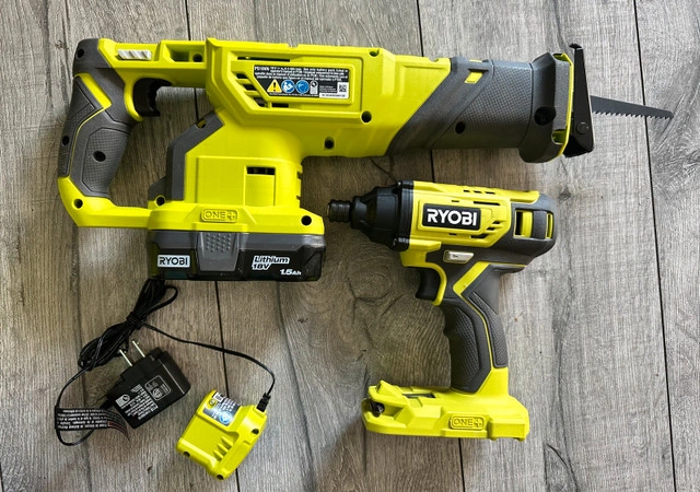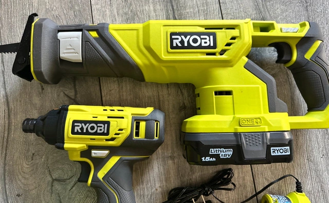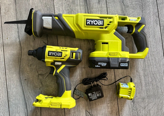 Its brand new Ryobi 18v power tools set Comes with 18v cordless Reciprocating saw /sawzall 18v cordless impact driver 18v battery 18v battery charger pickup only @ Glynn rd ajax Please check my other ads aswell pickup only harwood and kingston ajax thanks