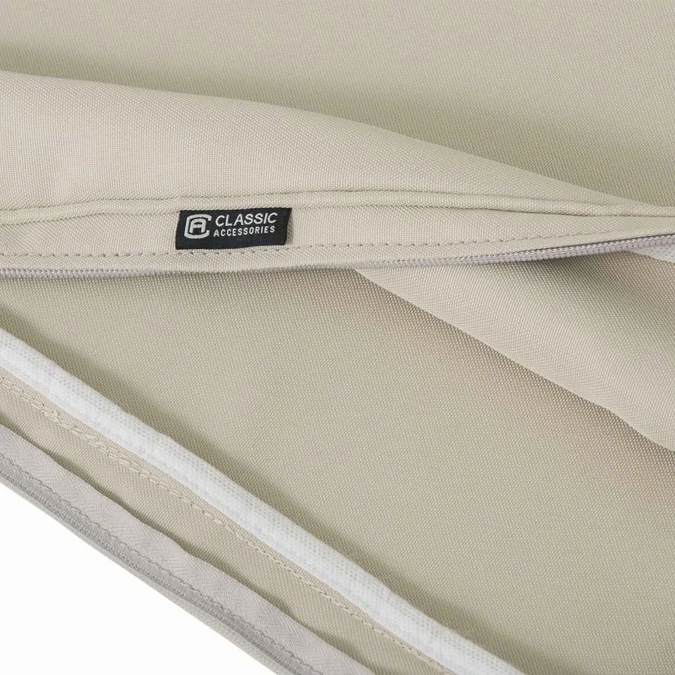Refresh your outdoor seating with this new Classic Accessories bench cushion with waterproof anti fade cover, perfect for adding comfort and style to your patio or garden bench. This cushion is new and ready to provide a cozy spot to relax outdoors. Here are some details: * Brand: Classic Accessories * Type: Bench Cushion * Condition: New * Colour: Beige * Dimensions: 48×19×4.5 inch