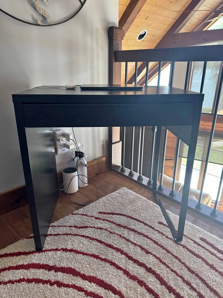Compact IKEA MICKE desk in black-brown finish, size 73x50 cm (28 ¾×19 ⅝”). One pull-out drawer for storage Built-in cable management hole at the back Sleek, space-saving design fits small spaces, perfect for home office, study, or bedroom Condition: gently used with minor wear Retails new for $99 at IKEA – asking less. Pick up only Cash