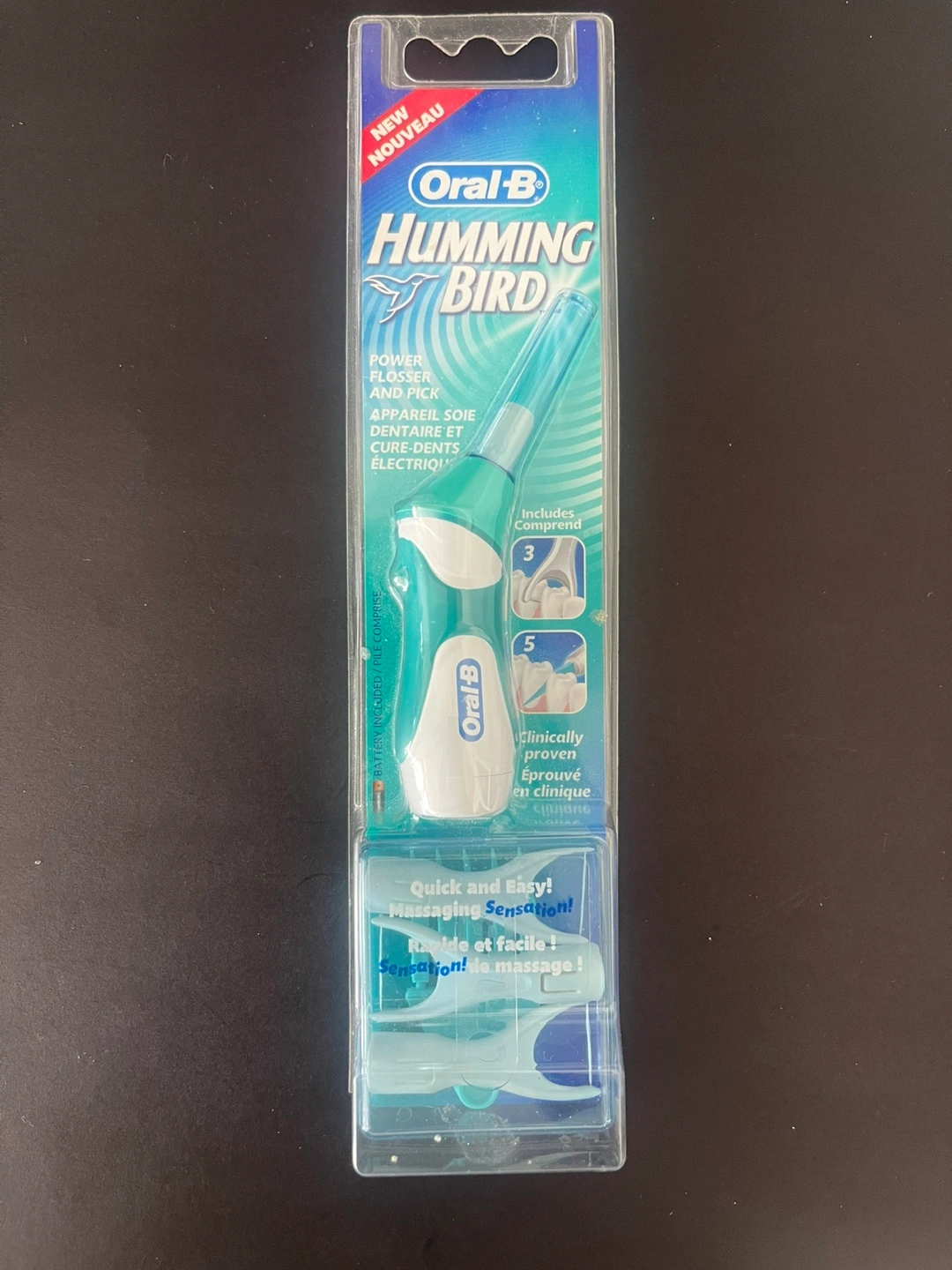 Selling an unused (still in original wrapper) Oral-B Humming Bird power flosser and pick! It's a power flosser and pick all in one. It includes 3 flosser tips. Recently sold for $99 on a similar website.