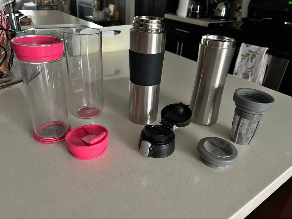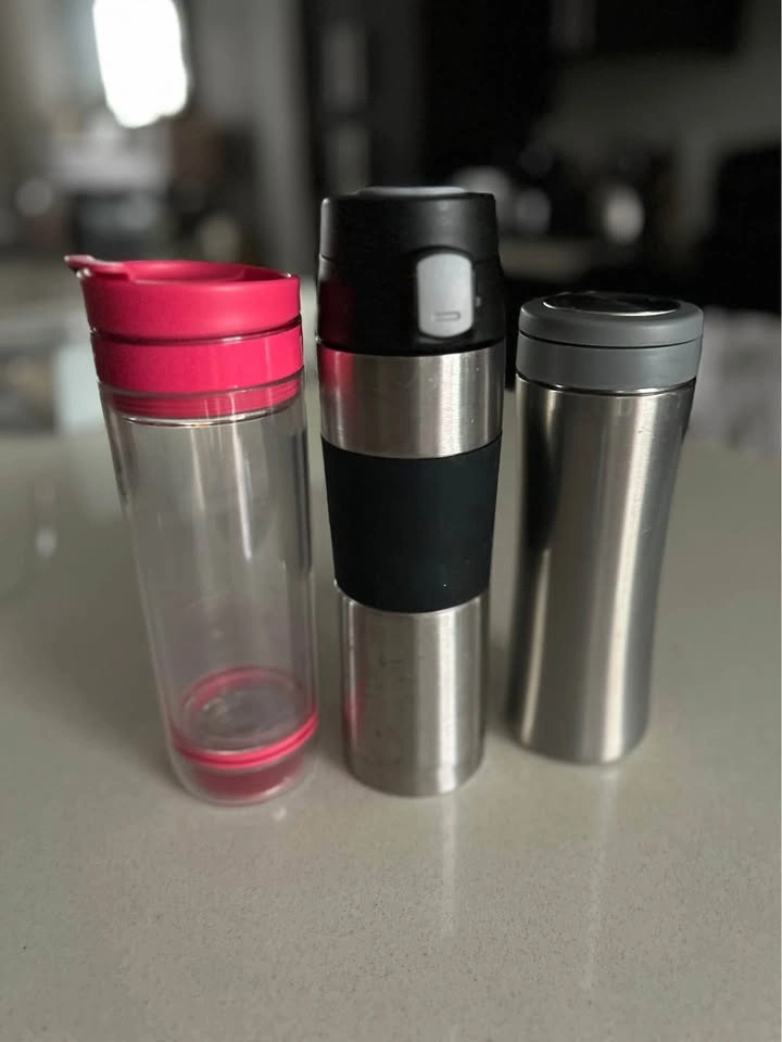 Great for storing water, tea or coffee. For work or on the go, 2 of them are stainless steel Pickup at 96 ave and 204 st Langley