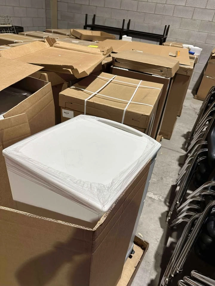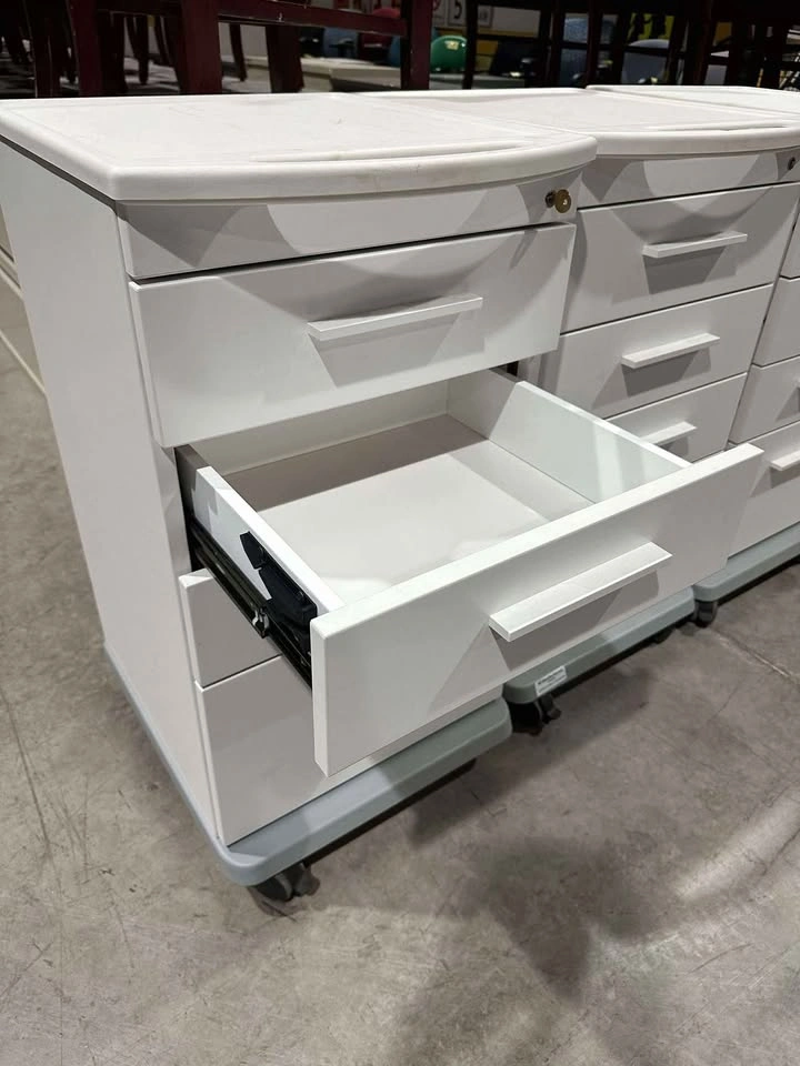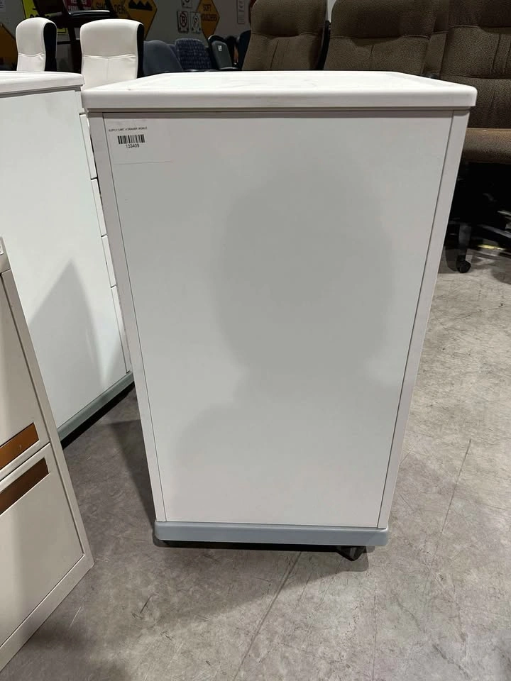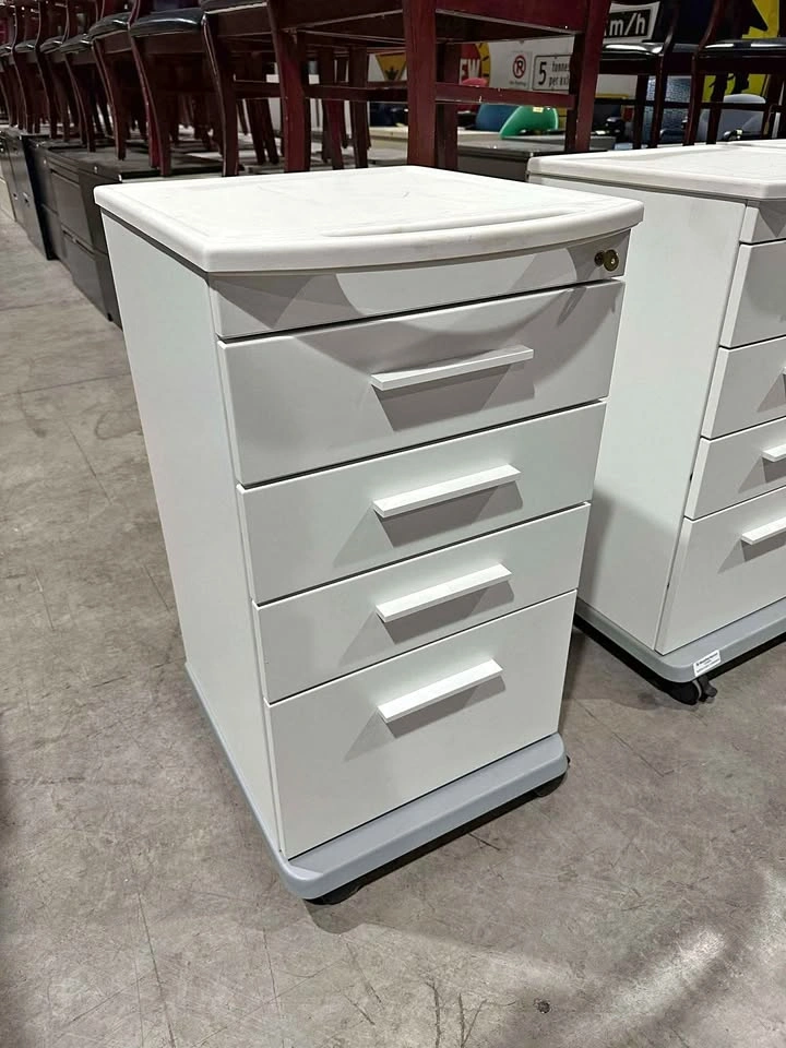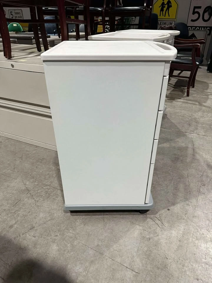 Comes with a key. Very sturdy. Name brand "Weatherhaven". White malamine. Wipeable. Like new condition. Most are still in the original box. 2 wheels are lockable. Made of medical grade material. Measure approximately 18 1/2" wide x 18" deep x 34" high. Regularly sell new for $3,000. Sale price $795 each plus HST. Pick up near Conestoga Mall in Waterloo Monday-Friday from 12-5 p.m., by appointment.