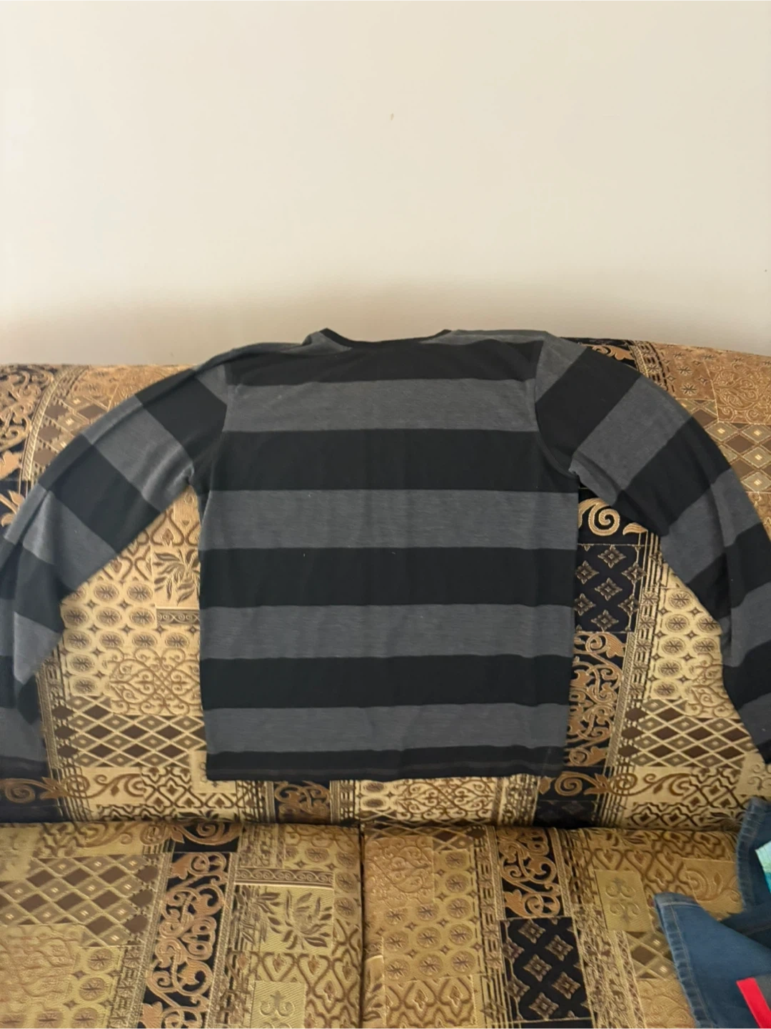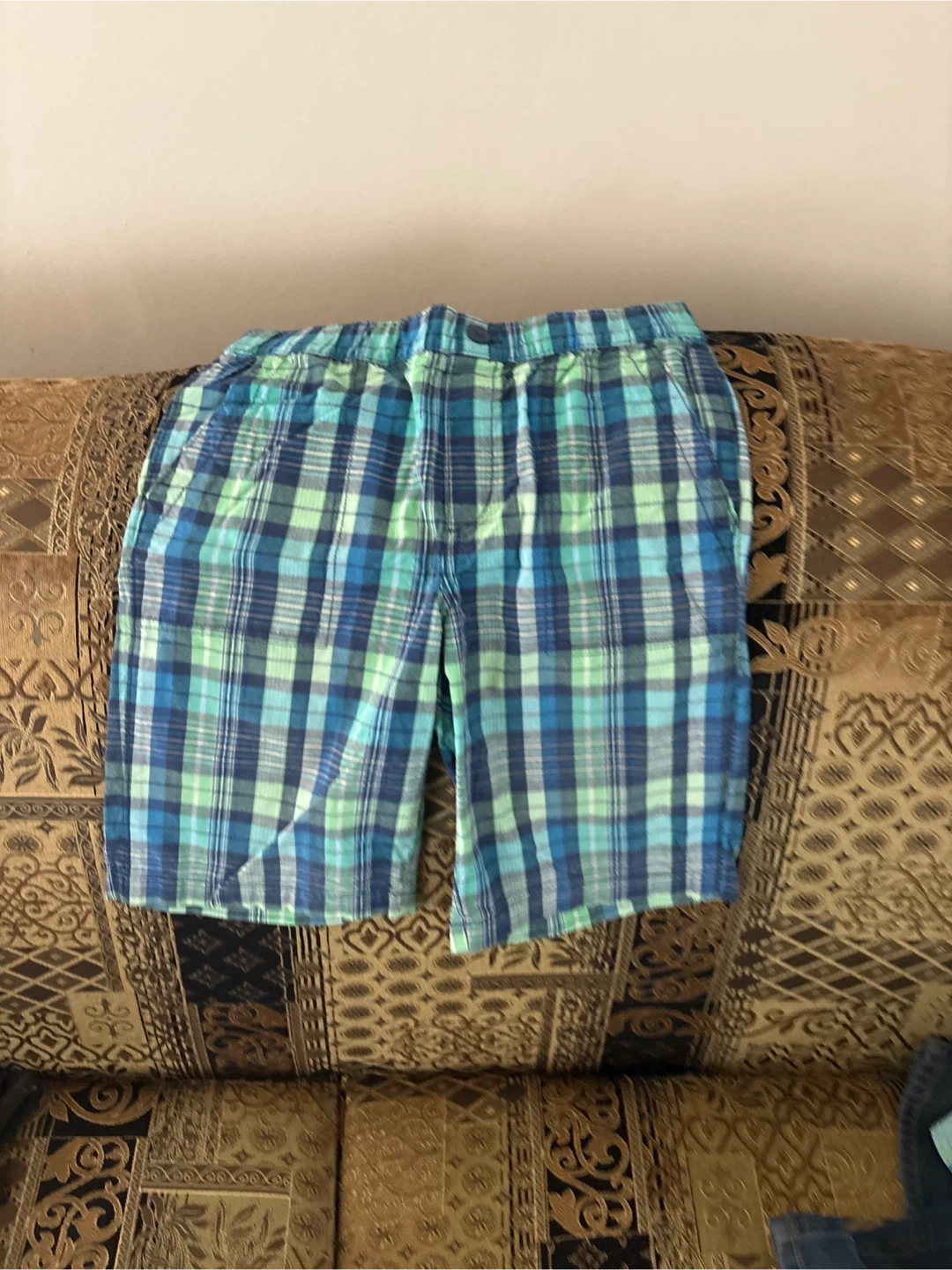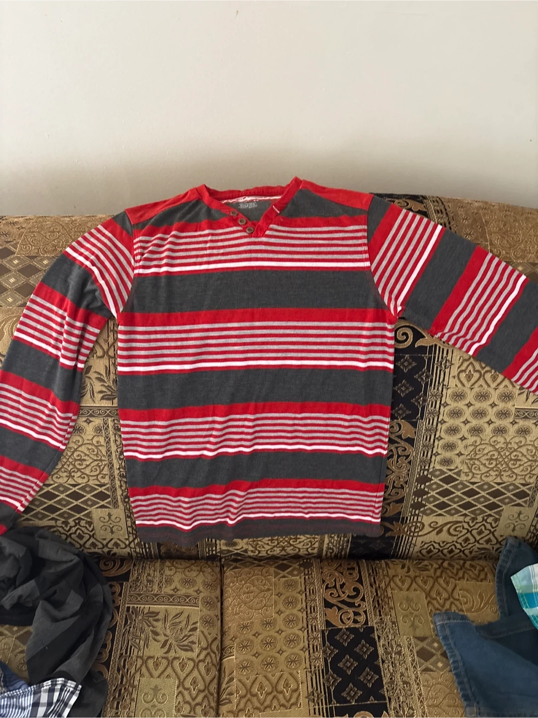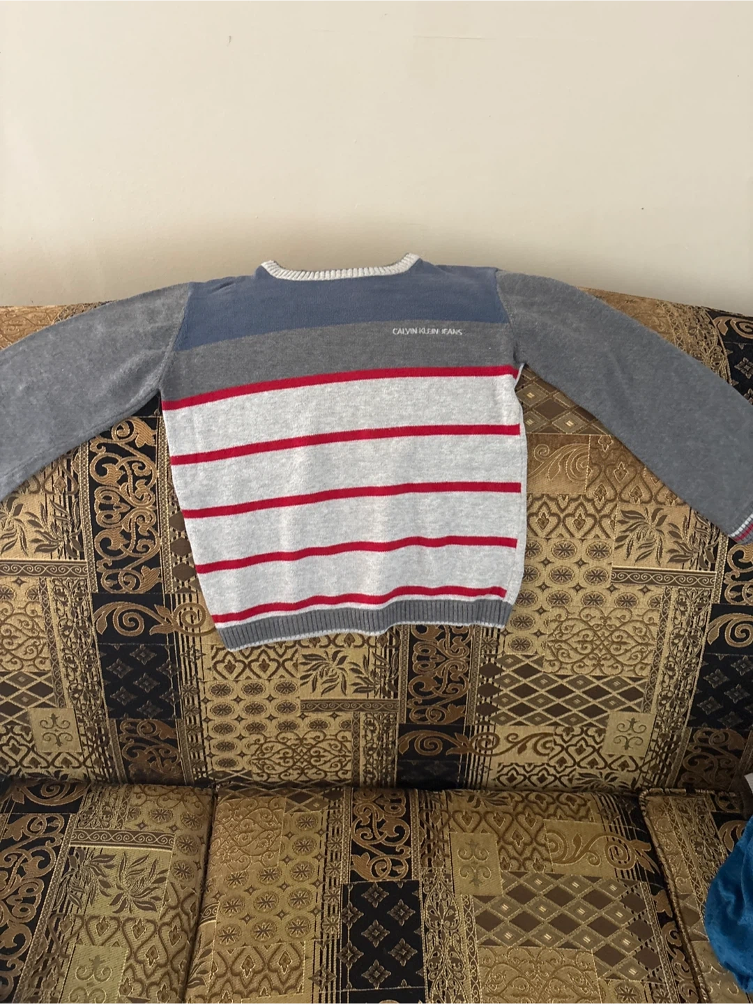 Selling a bundle of boys' clothing. Includes a Rocket League t-shirt, plaid shorts, a Calvin Klein Jeans sweater, and a couple of striped long-sleeve shirts. All in good condition and ready for a new home!