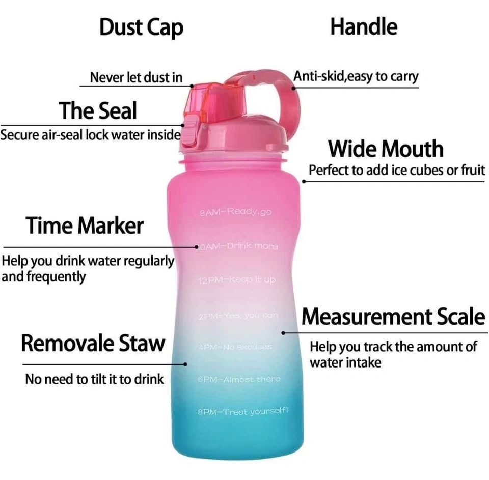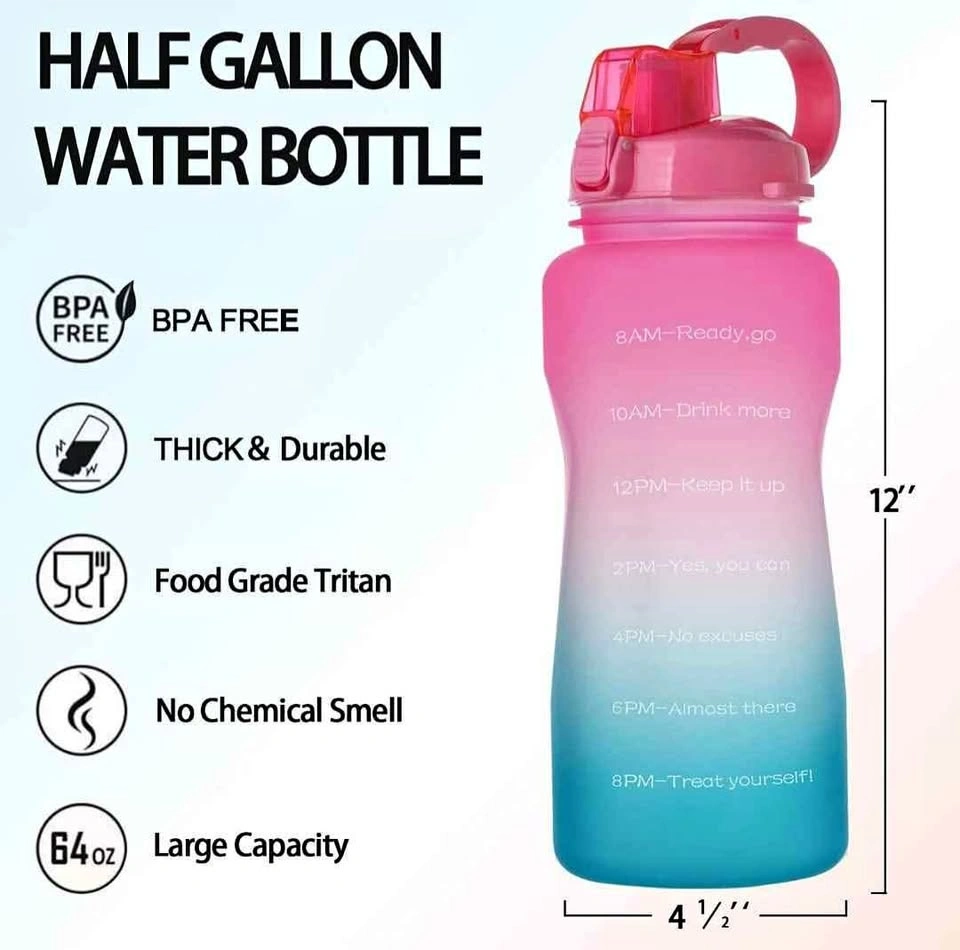 Half Gallon Water Bottle with Straw and Motivational Time Marker 64 oz Large Capacity S02-2.50