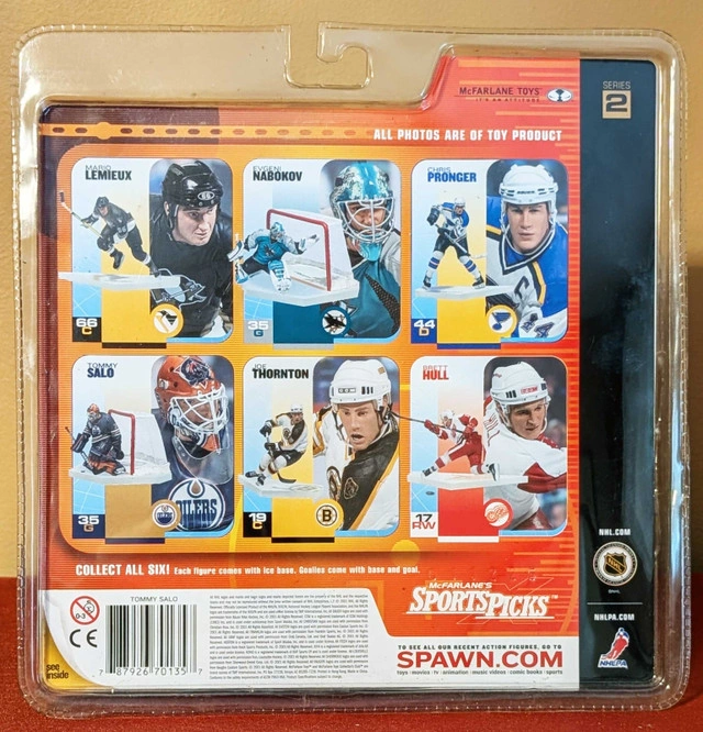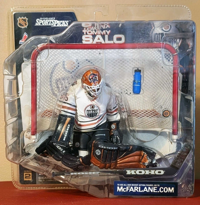 If you are seeing this Ad, then this item is still available This sale is for 1 very nice and clean NEW - McFarlane - Series 2 - Tommy Salo - Edmonton Oilers - White Jersey Variant Action Figure. The McFarlane Series 4 - Tommy Salo - Edmonton Oilers (Blue Jersey Oil Drop Variant) was released in 2003. This figure captures Tommy Salo in his goaltending stance, wearing the blue Edmonton Oilers jersey with the iconic oil drop logo, which was a chase variant—making it rarer than the standard white jersey version Key Features: • Highly detailed sculpt replicating Salo’s playing style. • Blue Edmonton Oilers jersey with oil drop logo, a sought-after collectible • 6-inch scale with realistic equipment details. • Limited availability, making it a prized item for collectors. Pick-up in Pickering ONLY This item comes from a smoke-free home.
