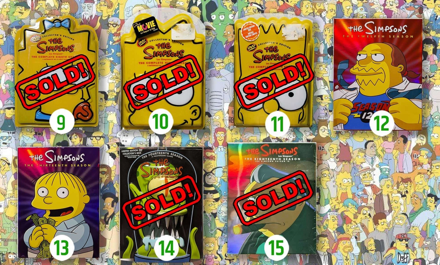 This sale is for some very nice and clean The Simpson's DVD Collection - Prices Firm and As Marked. These are adult owned and come complete with all the original cases, covers, inserts and, of course, the disc(s) itself. The DVDs are in great condition and most have only been played once. Set in Springfield, the average American town, the show focuses on the antics and everyday adventures of the Simpson family; Homer, Marge, Bart, Lisa and Maggie, as well as a virtual cast of thousands. Since the beginning, the series has been a pop culture icon, attracting hundreds of celebrities to guest star. The show has also made name for itself in its fearless satirical take on politics, media and American life in general. All prices are firm and as marked. 1 - The Simpson's Movie - 2007 $ 10.00 2 - The Complete First Season - SOLD 3 - The Complete Second Season - SOLD 4 - The Complete Third Season - $ 15 5 - The Complete Fourth Season - $ 15 6 - The Complete Fifth Season - $ 15 7 - The Complete Sixth Season - Collector's Edition - SOLD 8 - The Complete Seventh Season - Collector's Edition - SOLD 9 - The Complete Eighth Season - Collector's Edition - SOLD 10 - The Complete Ninth Season - Collector's Edition - SOLD 11 - The Complete Tenth Season - Collector's Edition - SOLD 12 - The Complete Twelfth Season - $ 15 13 - The Complete Thirteenth Season - $ 15 14 - The Complete Fourteenth Season - Collector's Edition - SOLD 15 - The Complete Eighteenth Season - Sealed - Never Opened - RARE - SOLD Pick-up in Pickering ONLY These items come from a smoke-free home.