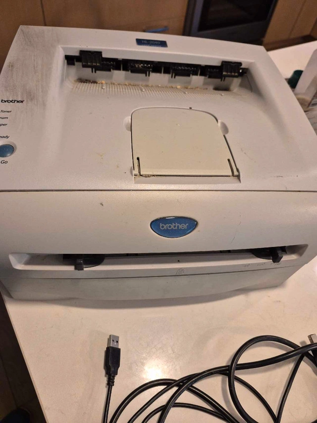 I am selling a used Brother HL-2040 laser printer, perfect for basic printing needs. This printer is in fair condition and has been tested to ensure it's in working order. Key features include: * Laser printing technology * Up to 20 pages per minute * USB connectivity It's a reliable printer for everyday use, though it shows signs of wear. Given its condition, I'm asking $30. Just a friendly heads-up: if you're seeing this ad, the printer is still up for grabs! It's waiting for a new home where it can continue its printing adventures.
