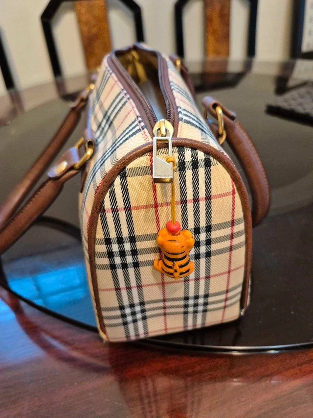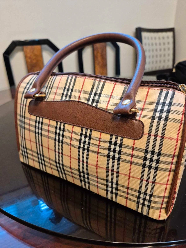 This is a used handbag with the classic plaid design. It's a stylish and compact accessory, perfect for carrying essentials while showcasing a touch of luxury fashion. The handbag features durable leather handles and trim, ensuring long-lasting quality and elegance. Here are some more details about the bag: * Pattern: Classic Plaid * Material: High-quality textile with leather trim * Handles: Sturdy leather handles for comfortable carrying If you see this ad, the Burberry Handbag is still available.