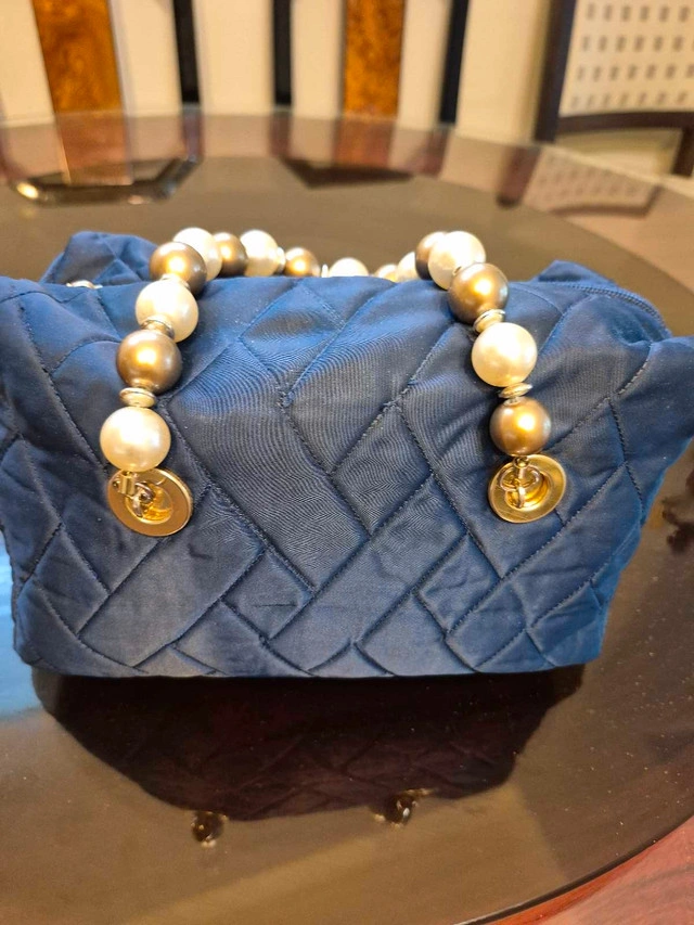 Add a touch of vintage charm to your collection with this unique Handbag, complete with elegant pearl and gold beaded handles. This stylish piece features iconic gold coin embellishments, offering a blend of classic design and distinctive flair. This is a used item. If the ad is up, it’s still available – so reach out and make it yours today!