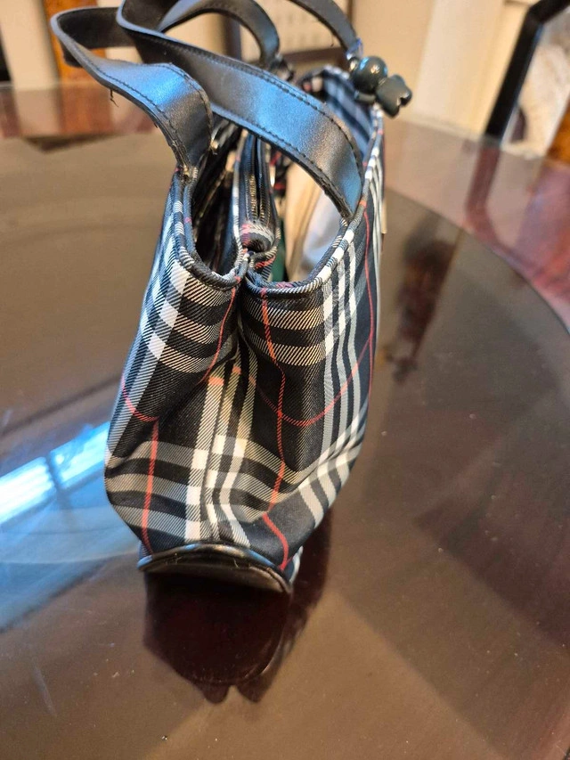 This Burberry handbag features a classic plaid pattern and offers a stylish way to carry your essentials. The bag is in good, used condition, ready for its next adventure. * Durable fabric * Comfortable straps * Stylish Design. I've priced it competitively, but I'm open to reasonable offers! And just a friendly reminder, if you're seeing this ad, the handbag is still available for purchase!