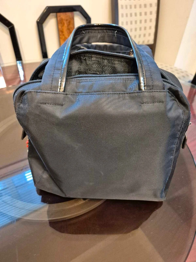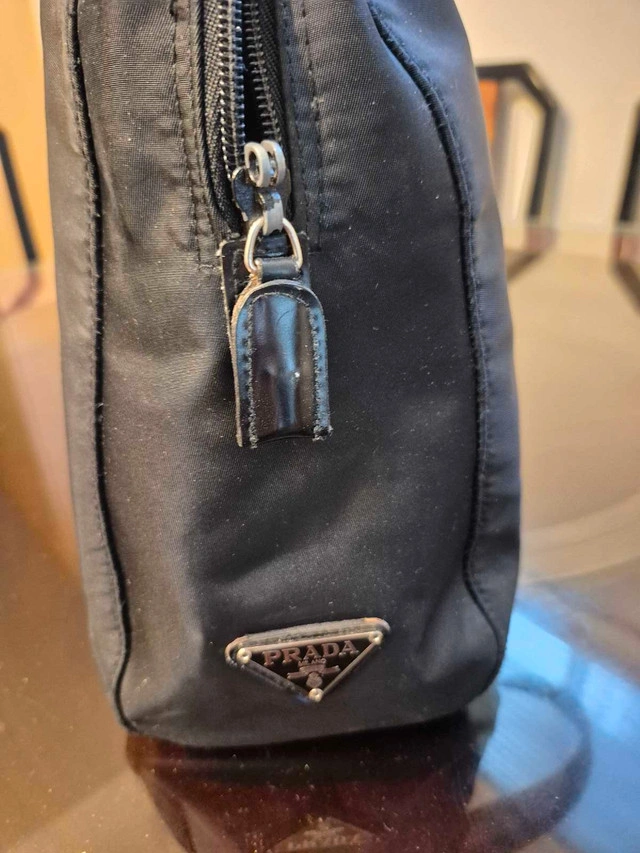 This is a used Prada bag with some wear and tear, but it's still a stylish accessory! This Prada handbag features a durable nylon material and a compact size, ideal for carrying your essentials. The iconic Prada logo is displayed on the front, showcasing its designer appeal. Perfect for adding a touch of luxury to your everyday look. The zipper could use some love to get it working perfectly. * Brand: Prada * Material: Nylon * Colour: Black I'm pricing this bag at $225 CAD given its condition. If the ad is still posted, yes, it's still available!