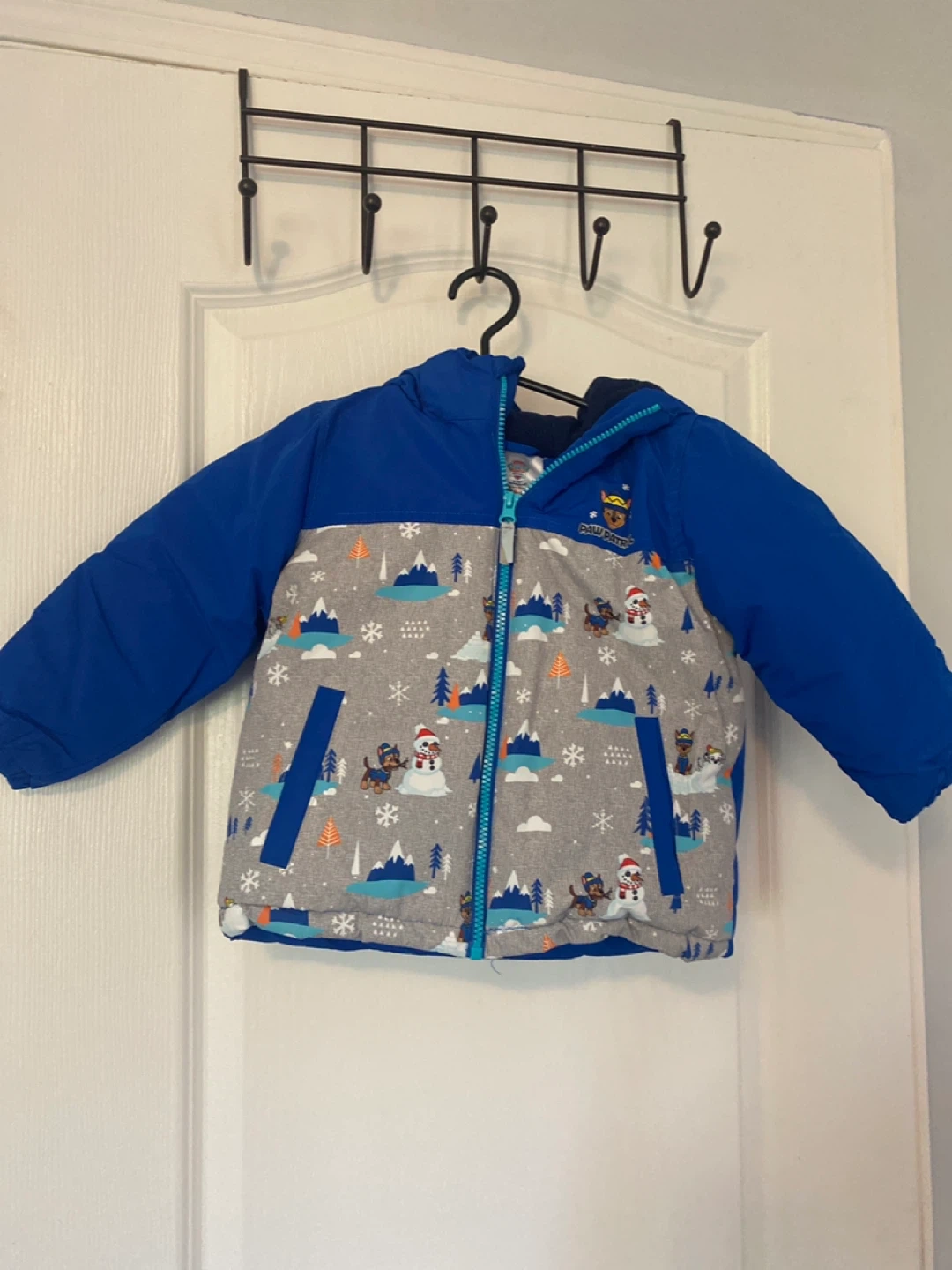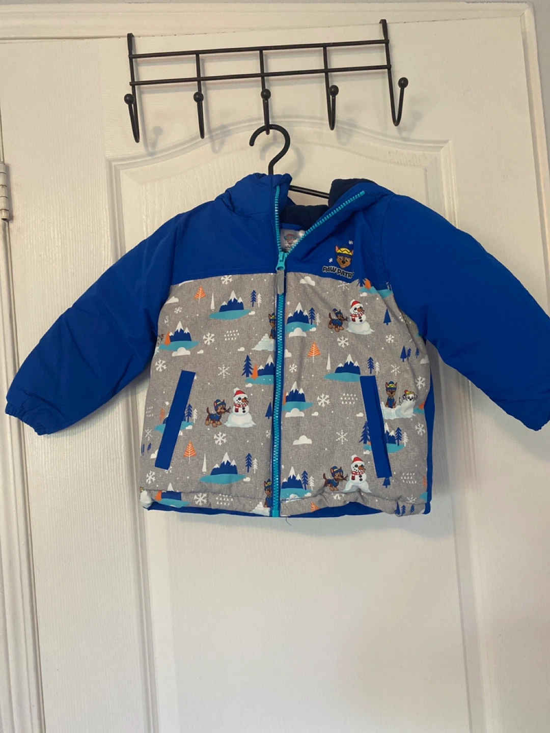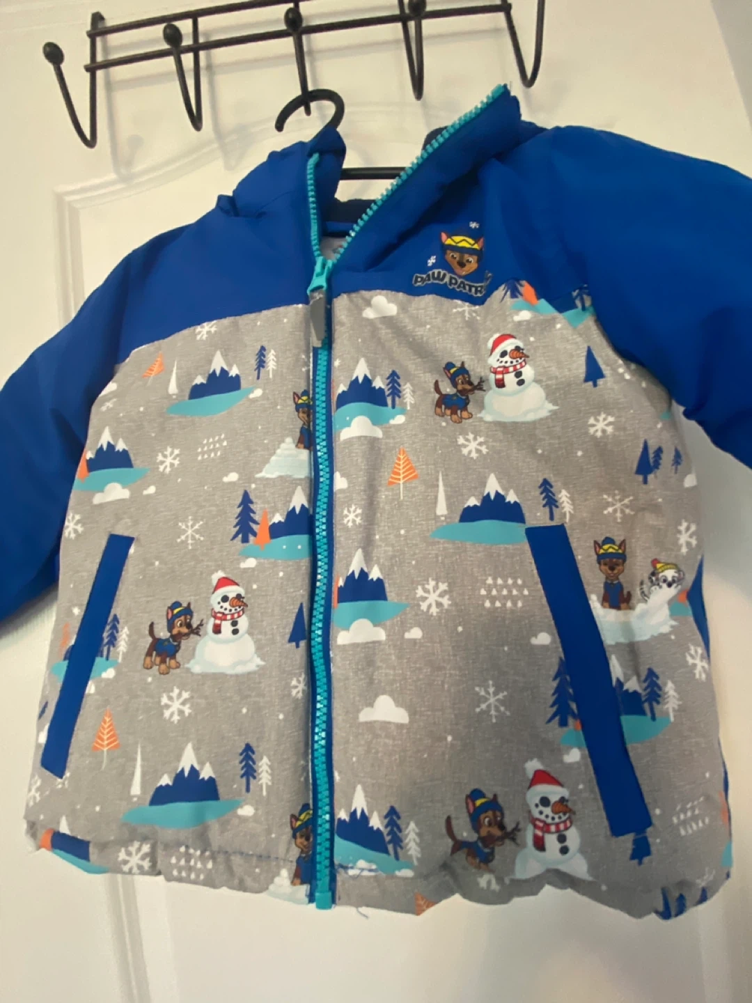 Keep your little one warm with this adorable Paw Patrol winter jacket! It's in excellent condition and features a fun, colourful design. - Brand: Paw Patrol - Size: 3T - Colour: Blue and Grey - Features: Hooded