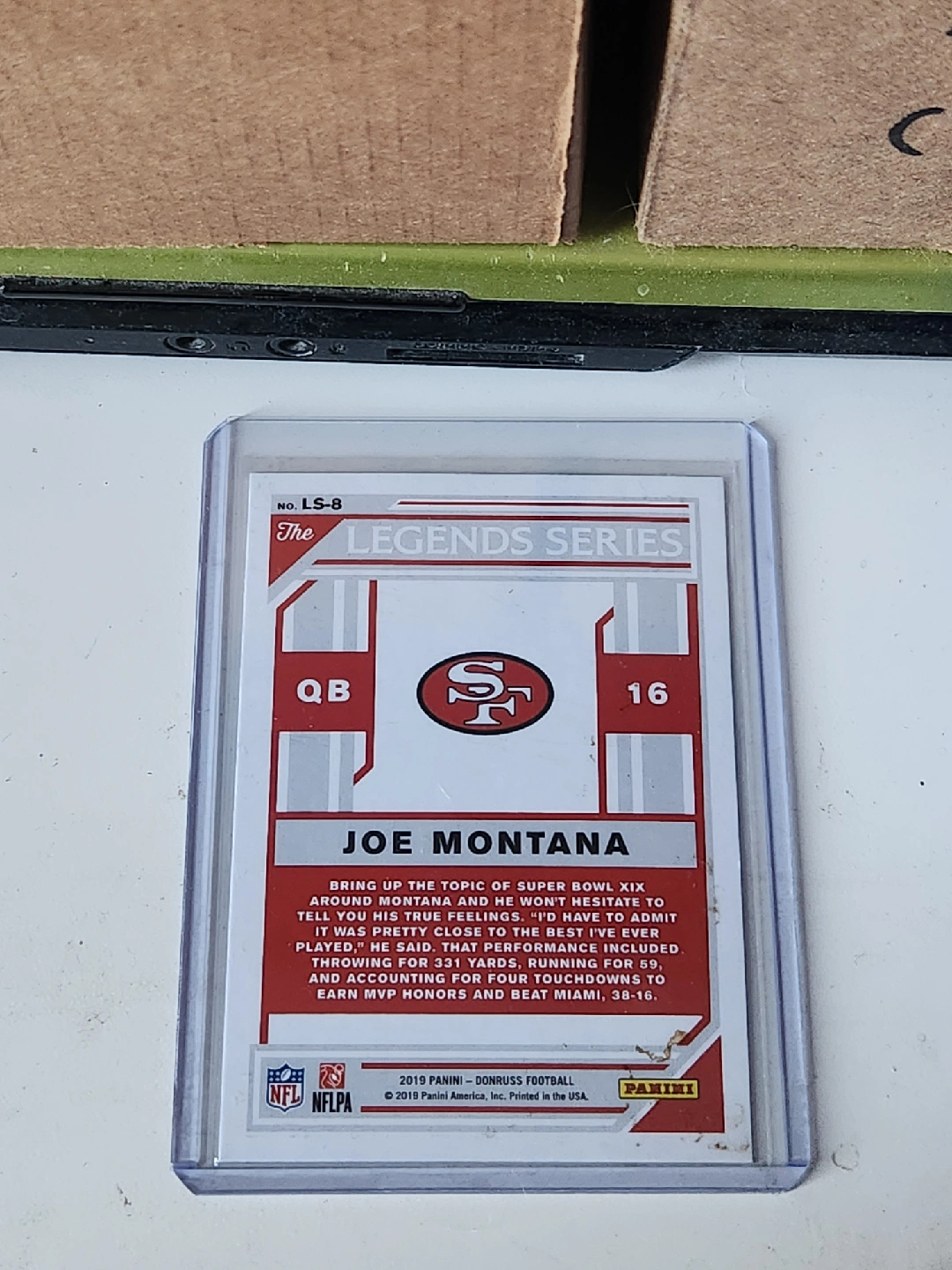 Selling a Joe Montana football card from The Legends Series. It's in great condition and ready for a new home with a sports fan!