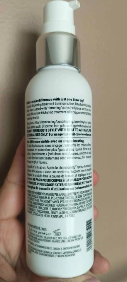 Just used once. Nearly full. Transform thin hair to thick and full, with heat protection. Bought from Sephora.