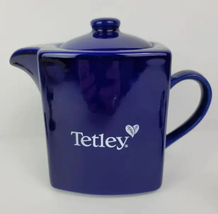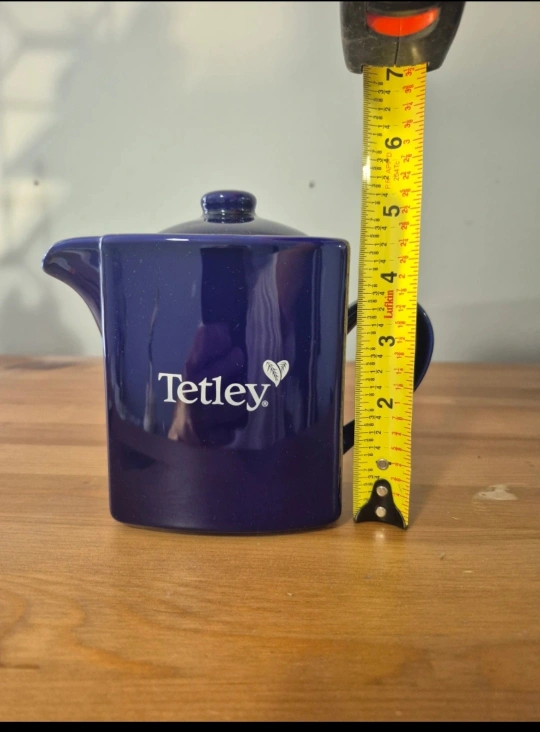 Selling a cute Tetley tea pot in blue! It's in great condition and perfect for brewing your favourite cuppa. The pot is about 6 inches tall.