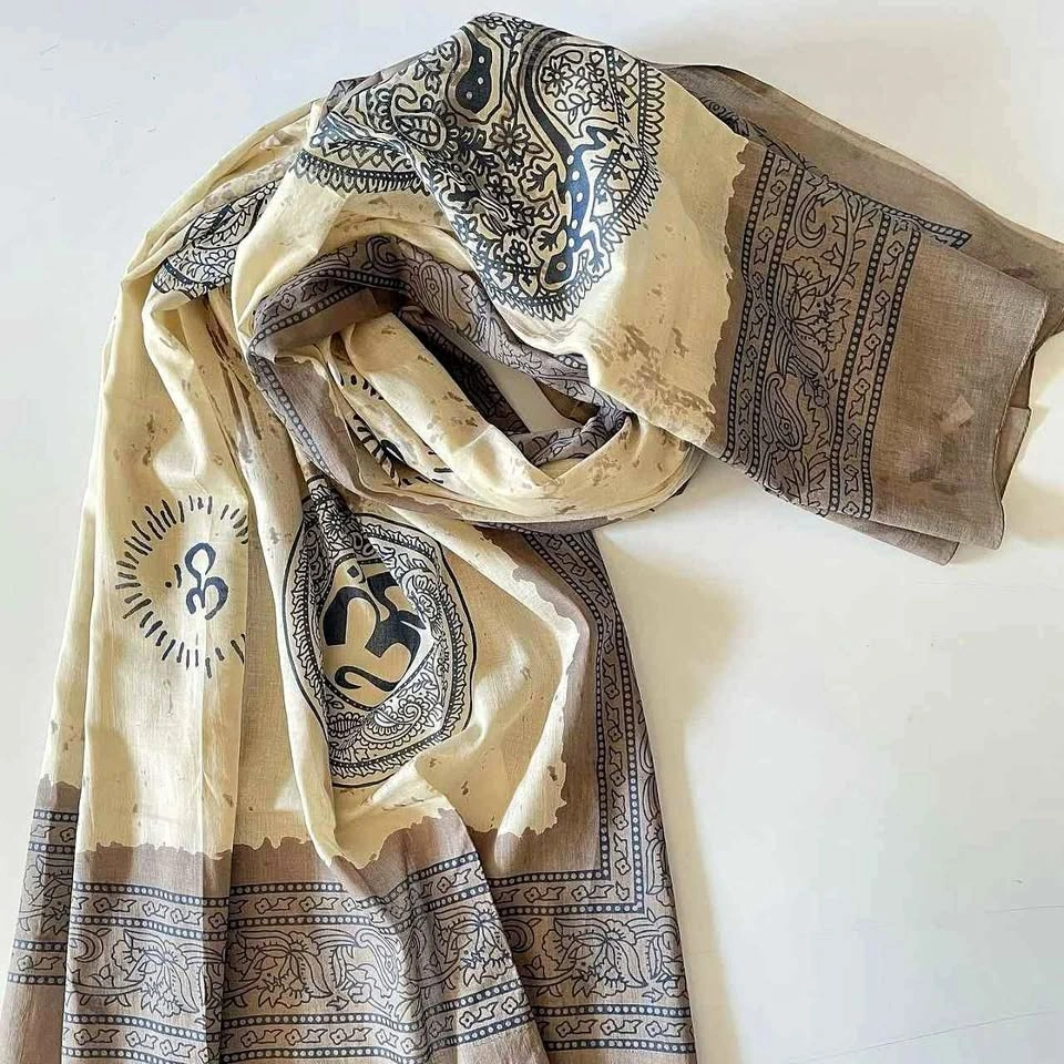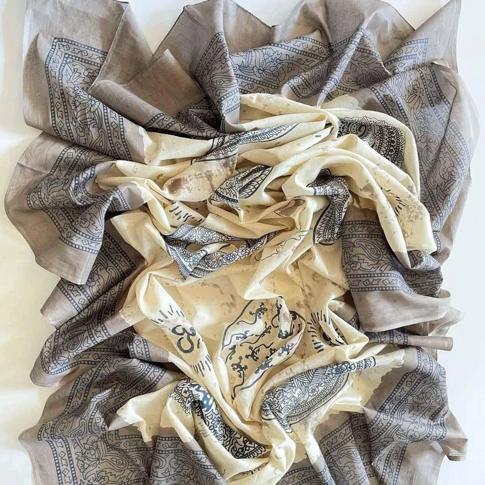 Hand printed, 100% cotton. Can be used as a wrap, shawl or scarf.