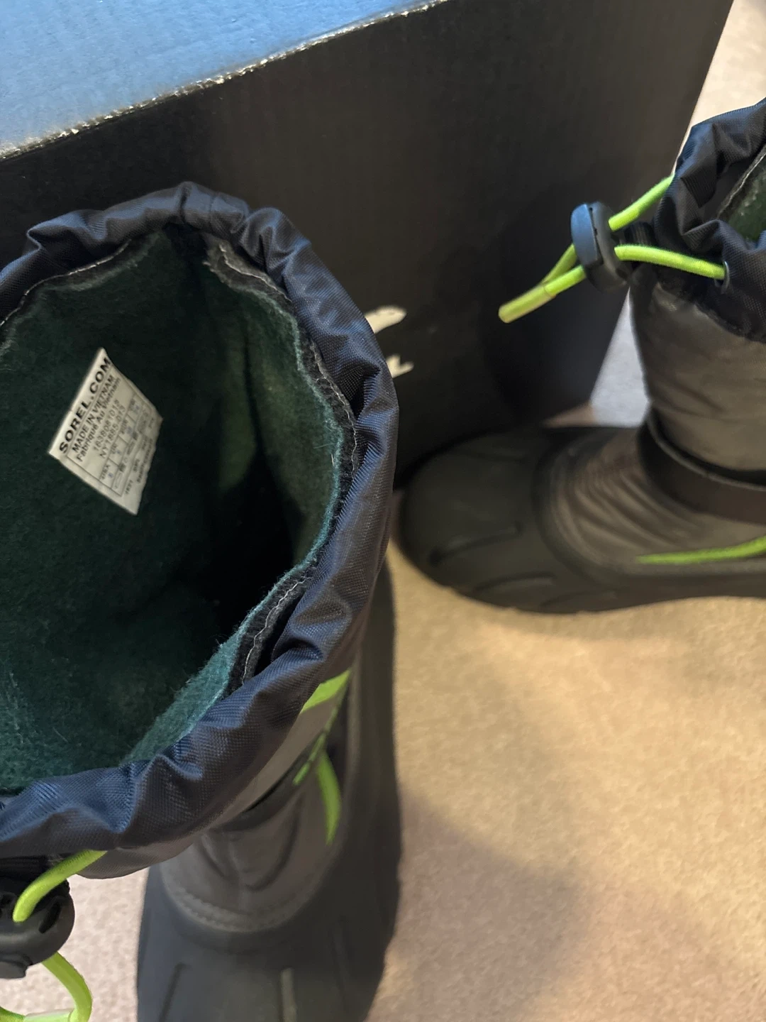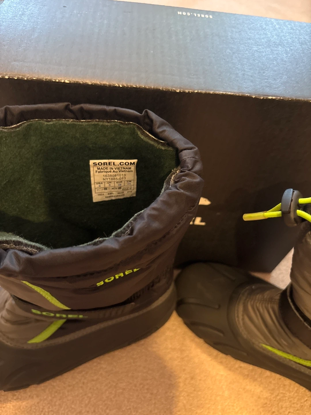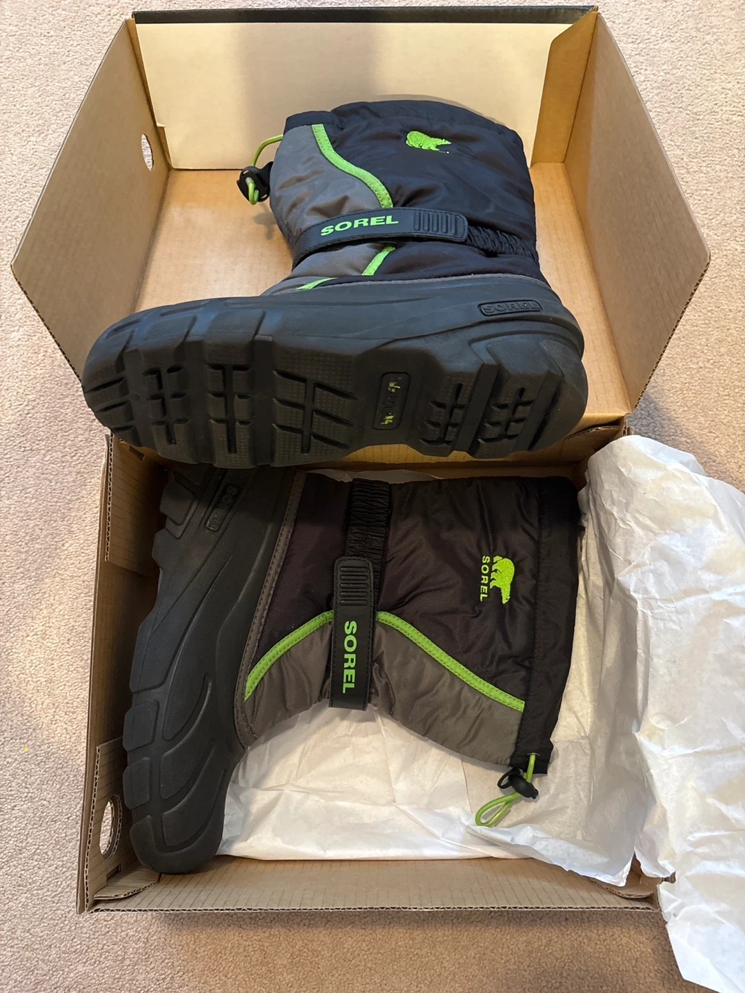 Selling a pair of Sorel Kids' Flurry winter boots in size 6.They are in great condition and come with the original box. These boots are perfect for keeping your little one's feet warm and dry during the winter months!