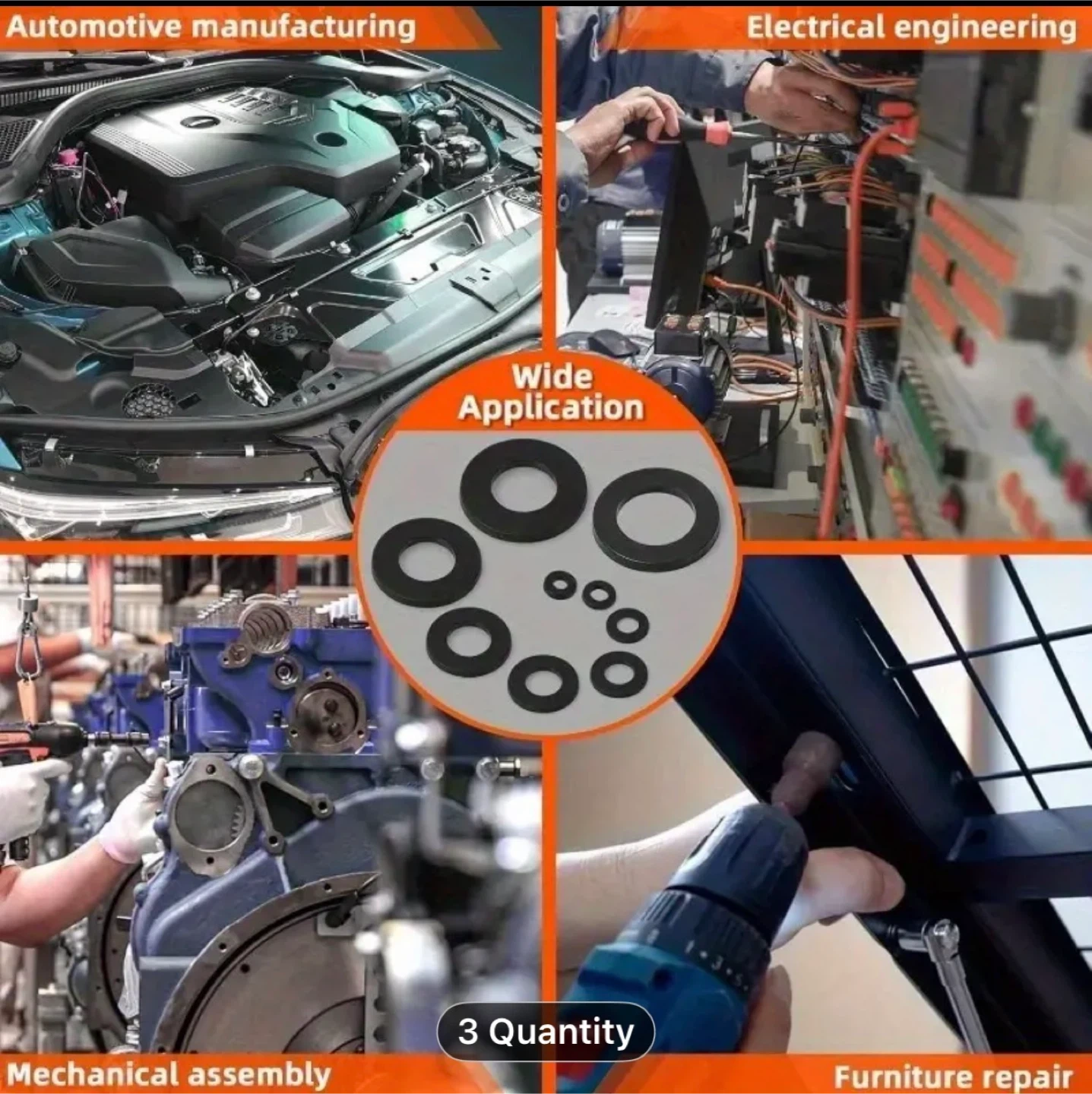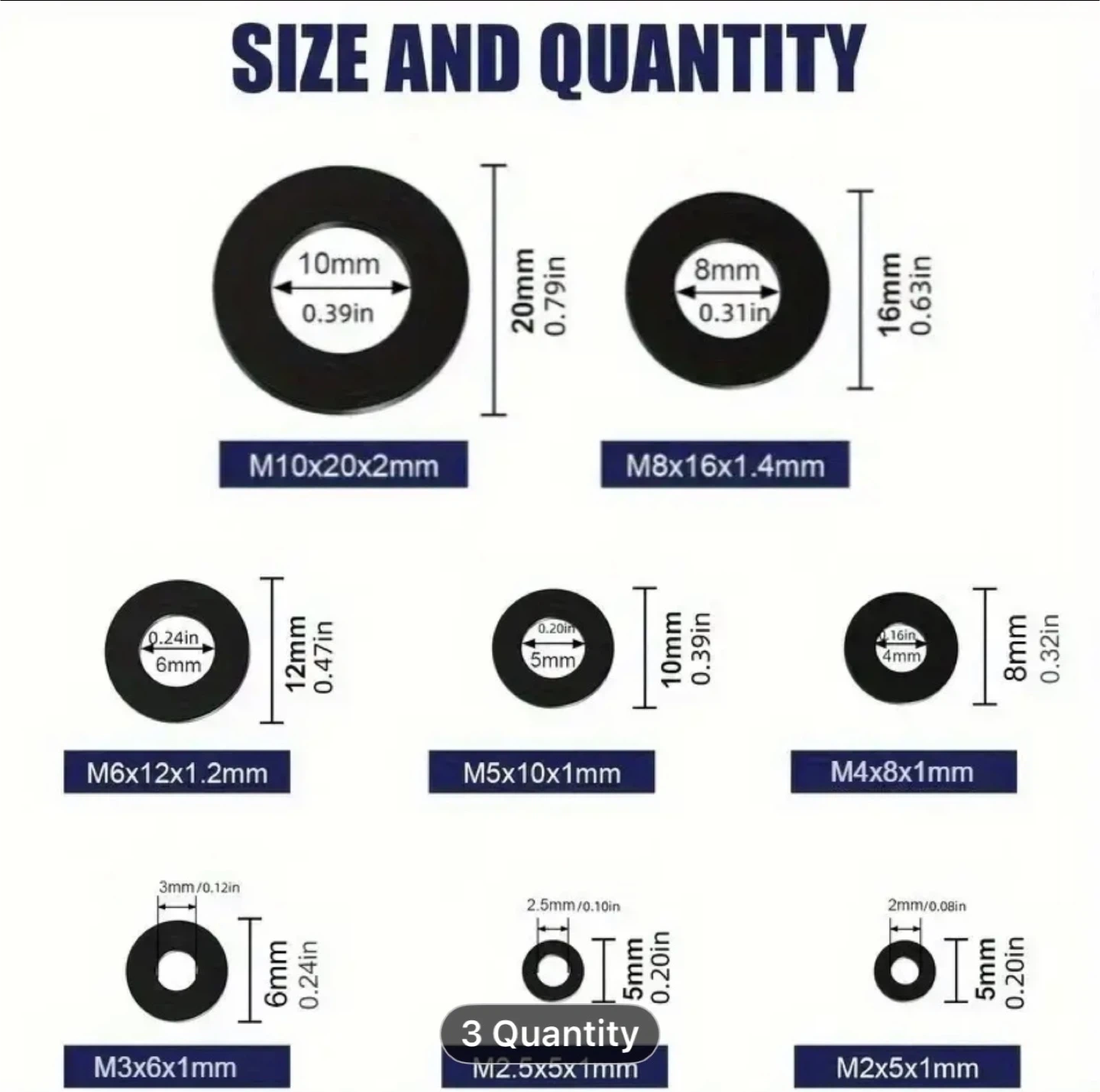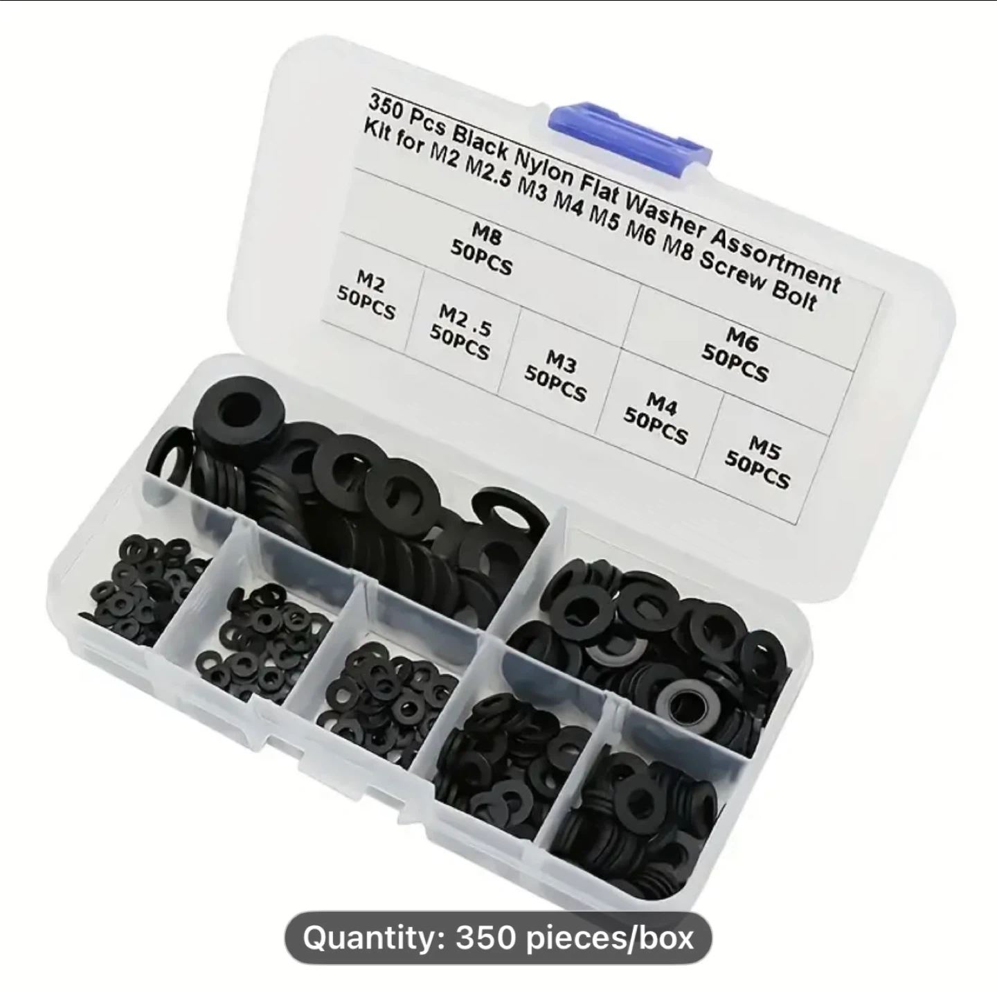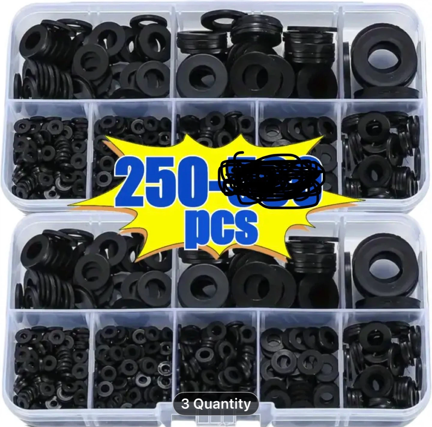 250 pcs Black Nylon Flat Ring Sealing Gasket Set (M2-M10 Sizes) - Heavy-Duty Anti-Loose Plastic Washers with Central Opening, Leak-Proof for Plumbing Repairs, Faucets, Pipes & Water Furniture - Durable & Corrosion-Resistant (Compatible with PVC/CPVC), Faucet Repair, Precision Fit, Highquality Gaskets, DIY Enthusiasts, Maintenance Professionals