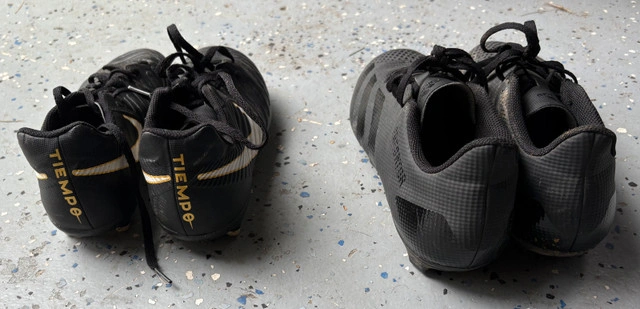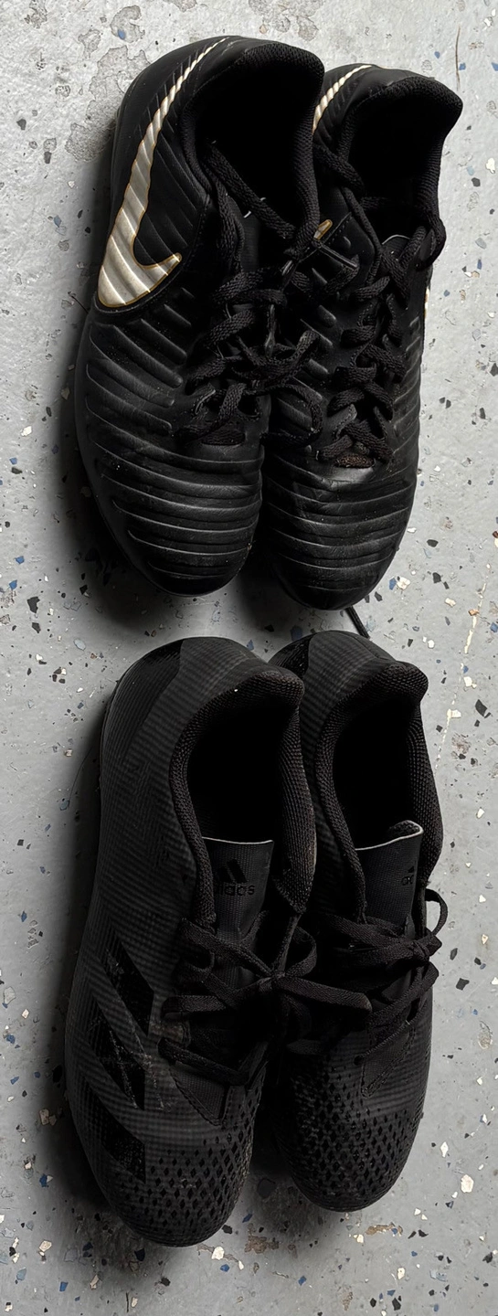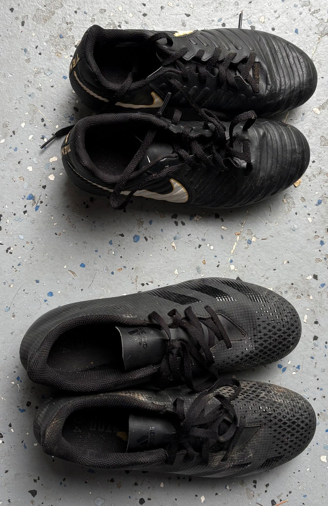 Nike Tiempo size 6Y - $10. Adidas size 8.5 - $10. Both in used condition. Fit teen/adult.