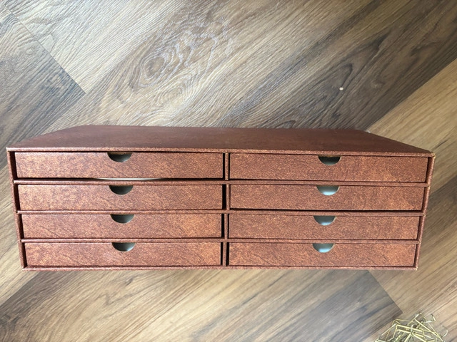 This Van Hygan & Smythe Plate Storage System features eight drawers and is designed to keep your valuable plates safe and organized. Please note this item is in used condition, with one visible imperfection on one side as shown in the photos. * Eight drawers * Designed for plate storage
