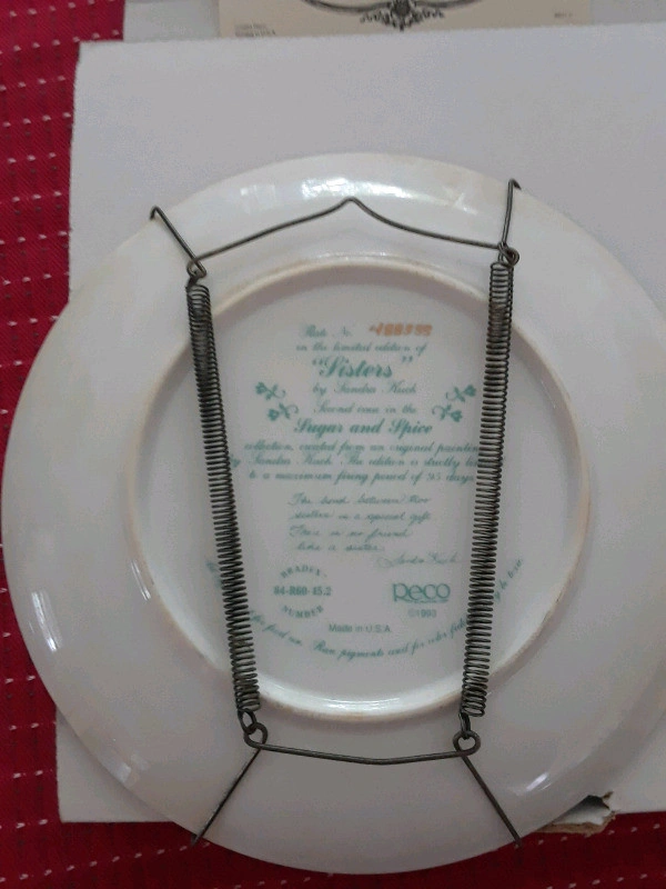 Two beautiful plates: Sister's love forever $20 and Sisters Sugar and spice $20 Limited edition Numbered plate Comes with all the paperwork