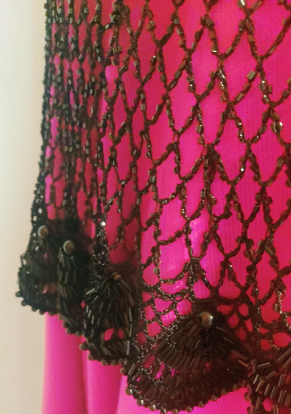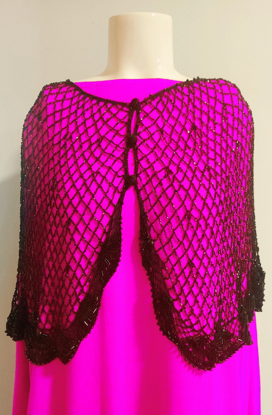Beautiful black cape with intricate black beading! This cape is in great condition and would be a lovely addition to any outfit. The beading adds a touch of elegance and sophistication