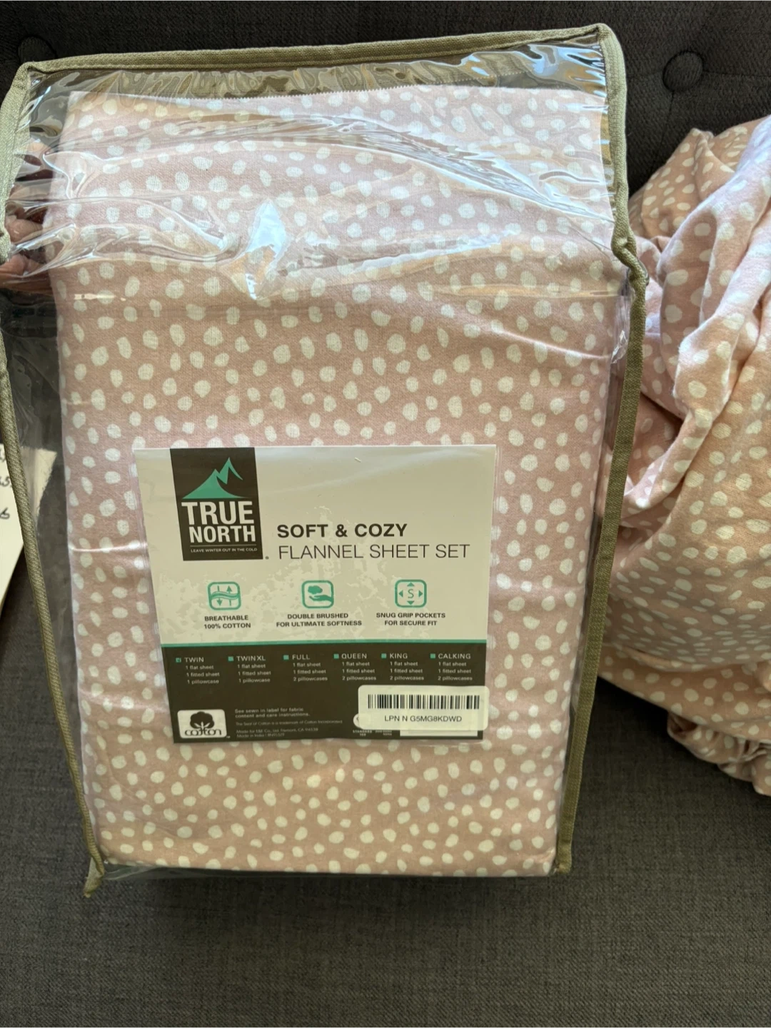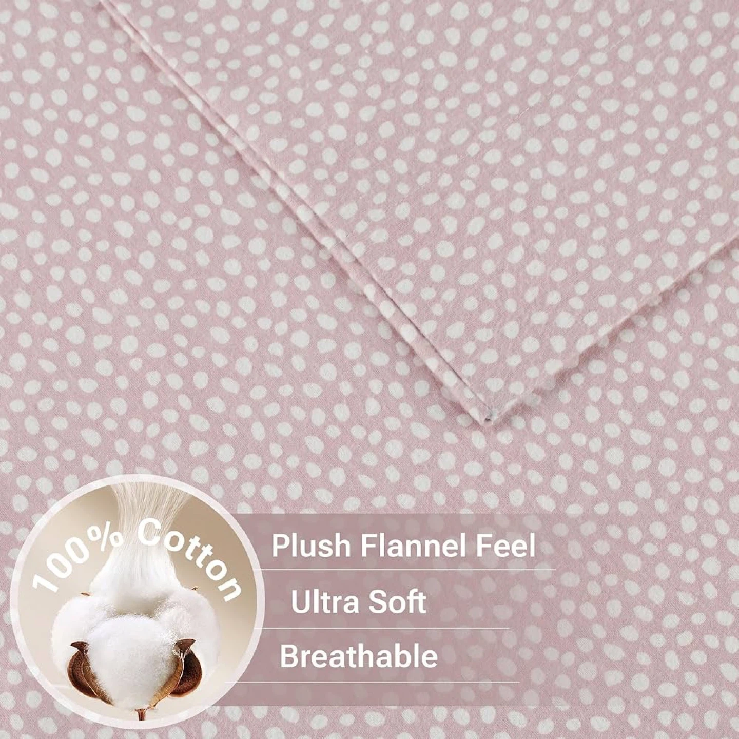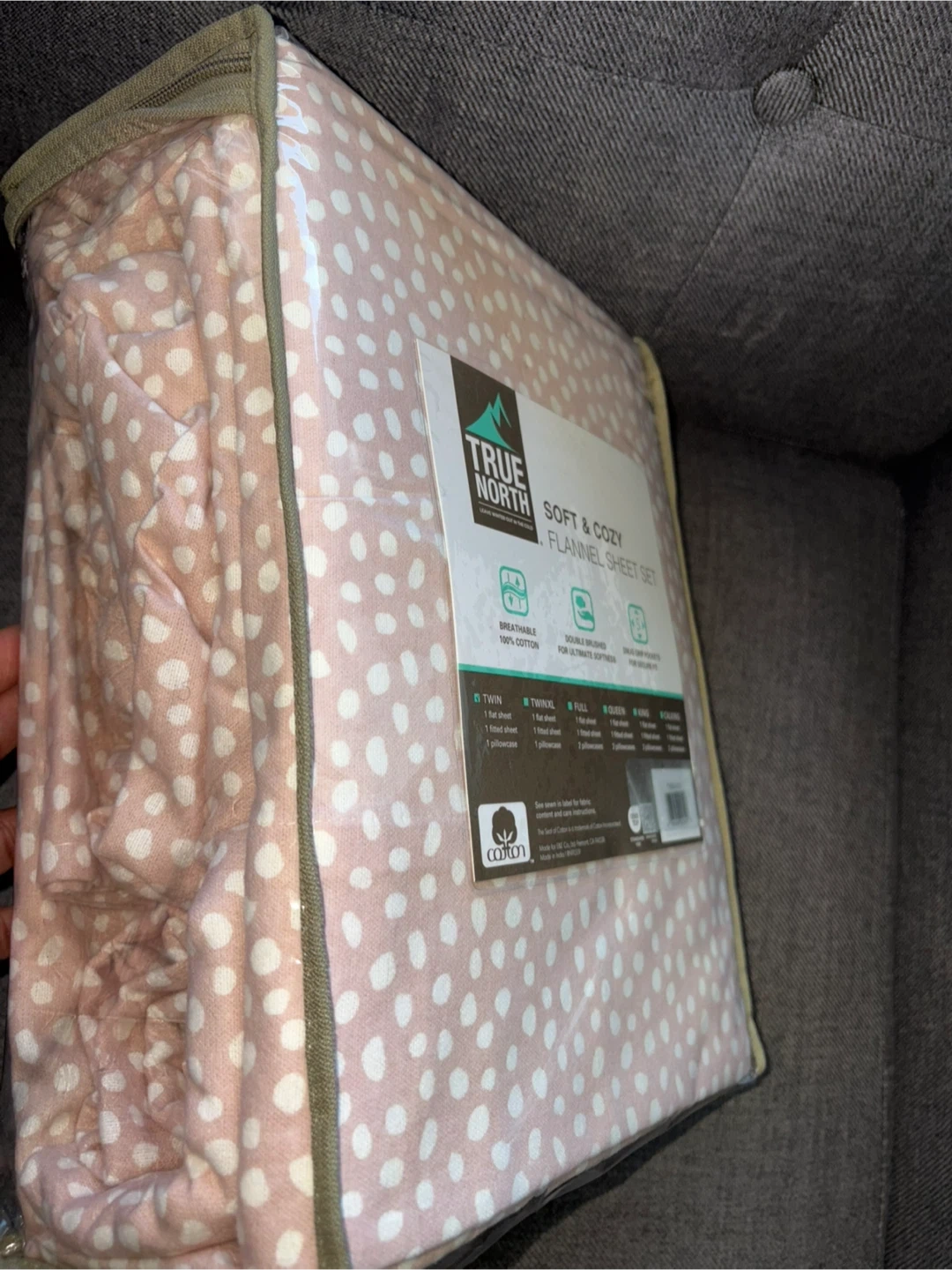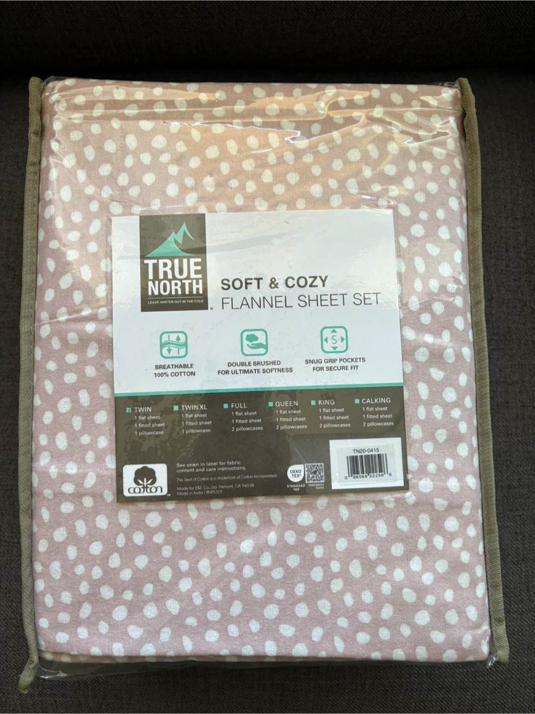 Brand new True North by Sleep Philosophy Cozy Flannel Warm 100% Cotton Sheet - Novelty Print Animals Stars Cute Ultra Soft Cold Weather Bedding Set, Twin Size Blush Dots 3 Pieces-1flat,1fitted and 1 pillowcase No holds No delivery