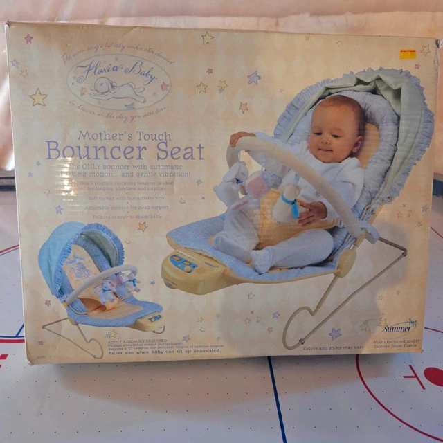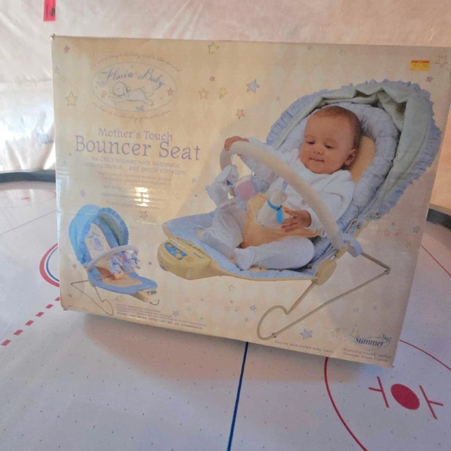 This bouncer seat is perfect for keeping your little one entertained and comfortable! It's in new condition in box. *Automatic rocking motion and Gentle vibrations. *3 position reclining bouncer. Folding canopy