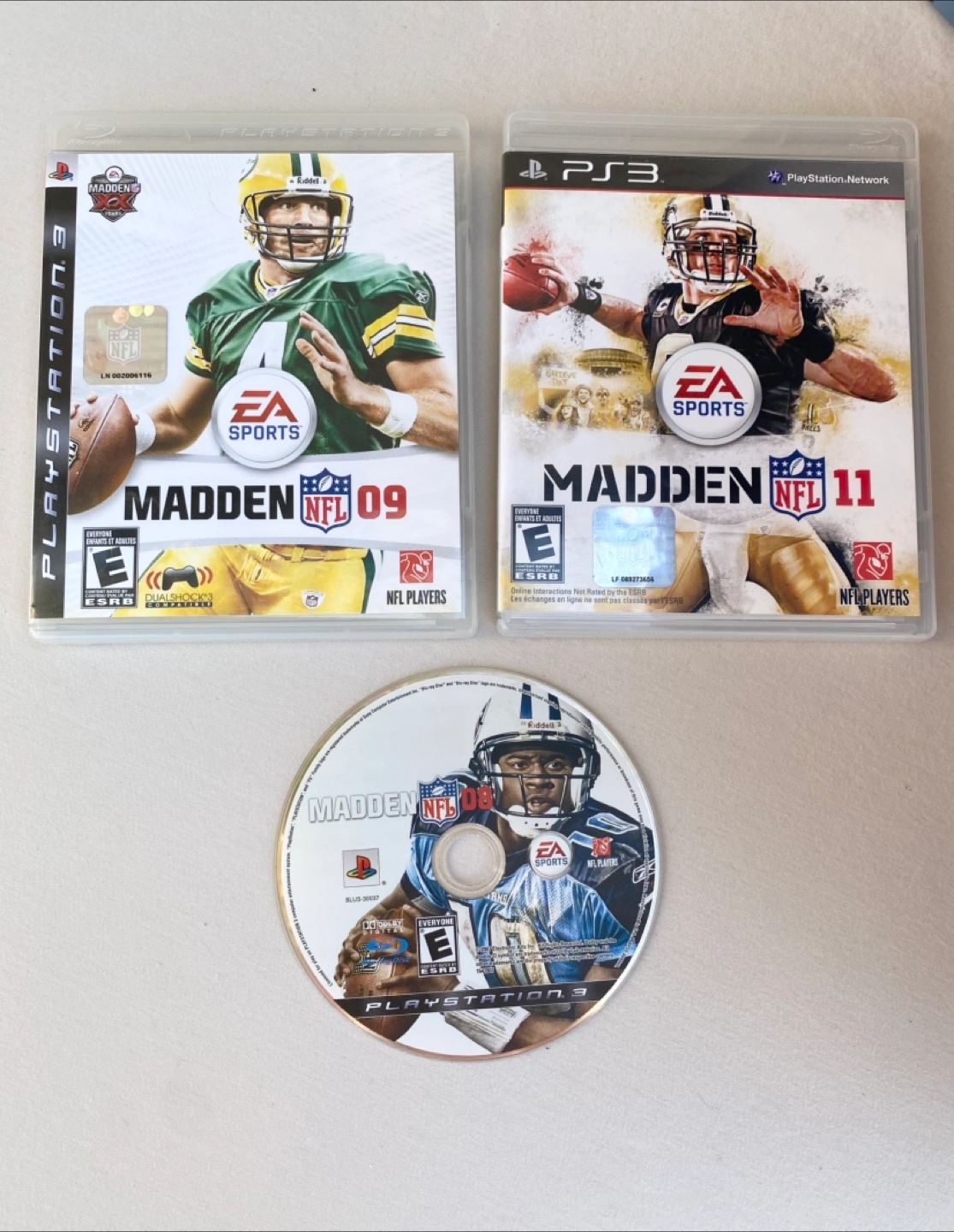 Selling a collection of Madden NFL games for the PlayStation 3! Includes Madden NFL 08, Madden NFL 09, and Madden NFL 11. All games are in good condition and ready to play. Perfect for any football fan! $5 each or 3 for $10 Acadia SE