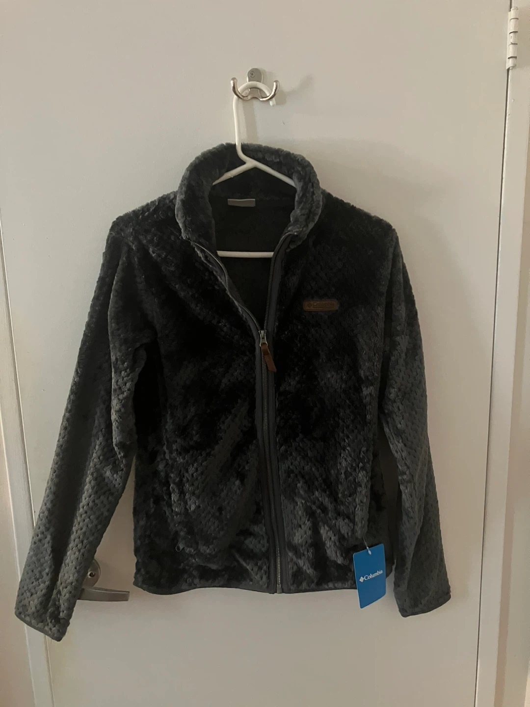Cozy up with this brand new Columbia fleece jacket! It's a lovely grey colour and still has the tags attached. Perfect for layering or wearing on its own on milder days. It's in excellent condition and ready for a new home!