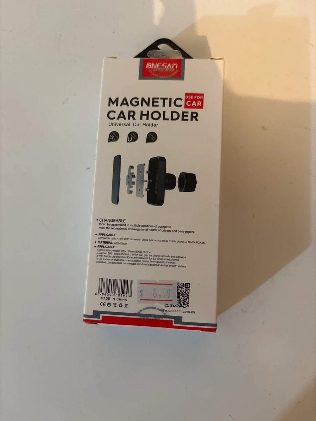 Selling a brand new ONESAM 360° rotation magnetic car holder! It's a universal car holder that can be used for different kinds of clips. It's applicable to various digital products such as mobile phones, GPS, MP4, PDA, etc. The material is durable and the holder can be rotated vertically and sideways