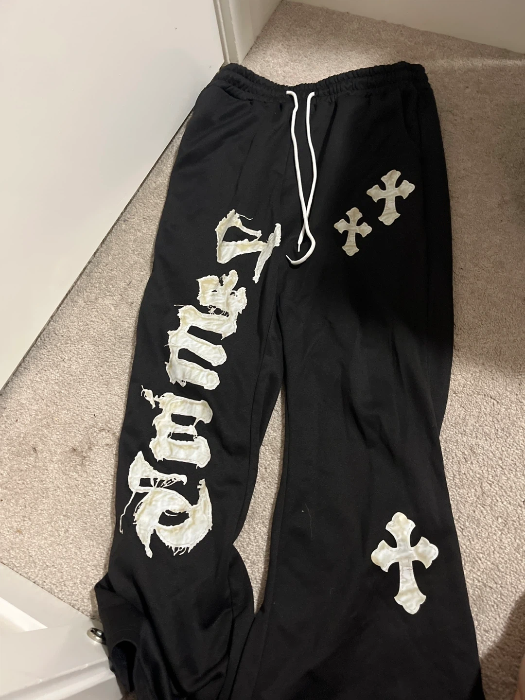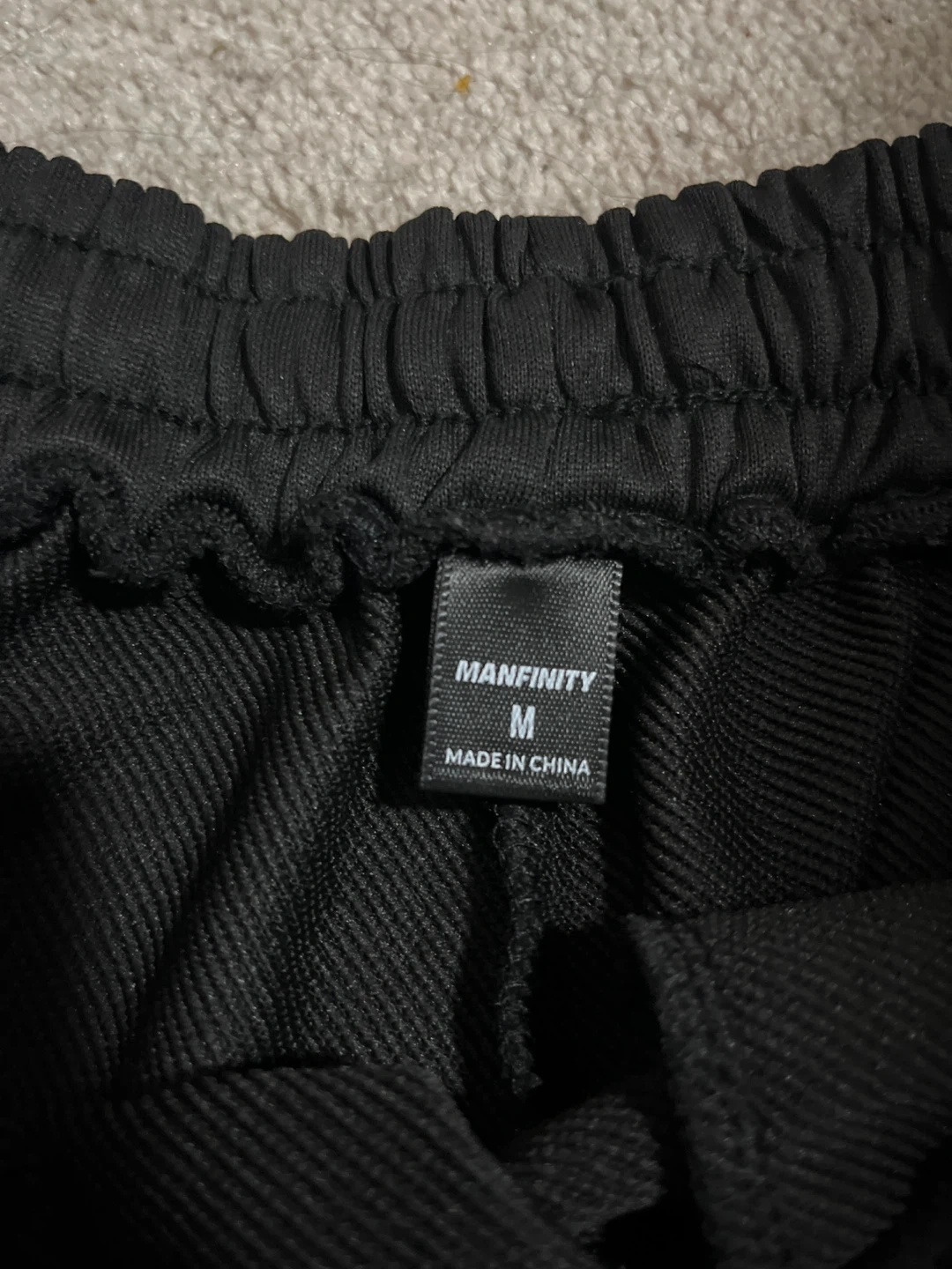 Selling a pair of black Manfinity sweatpants in size medium! They have a unique design on the side and are super comfy. Perfect for lounging around or running errands (DM for more info/questions) Cash and pick up only