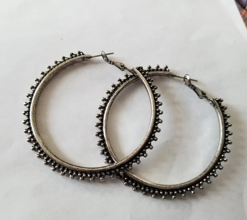 Selling a pair of hoop earrings. They are silver in colour and Brand new