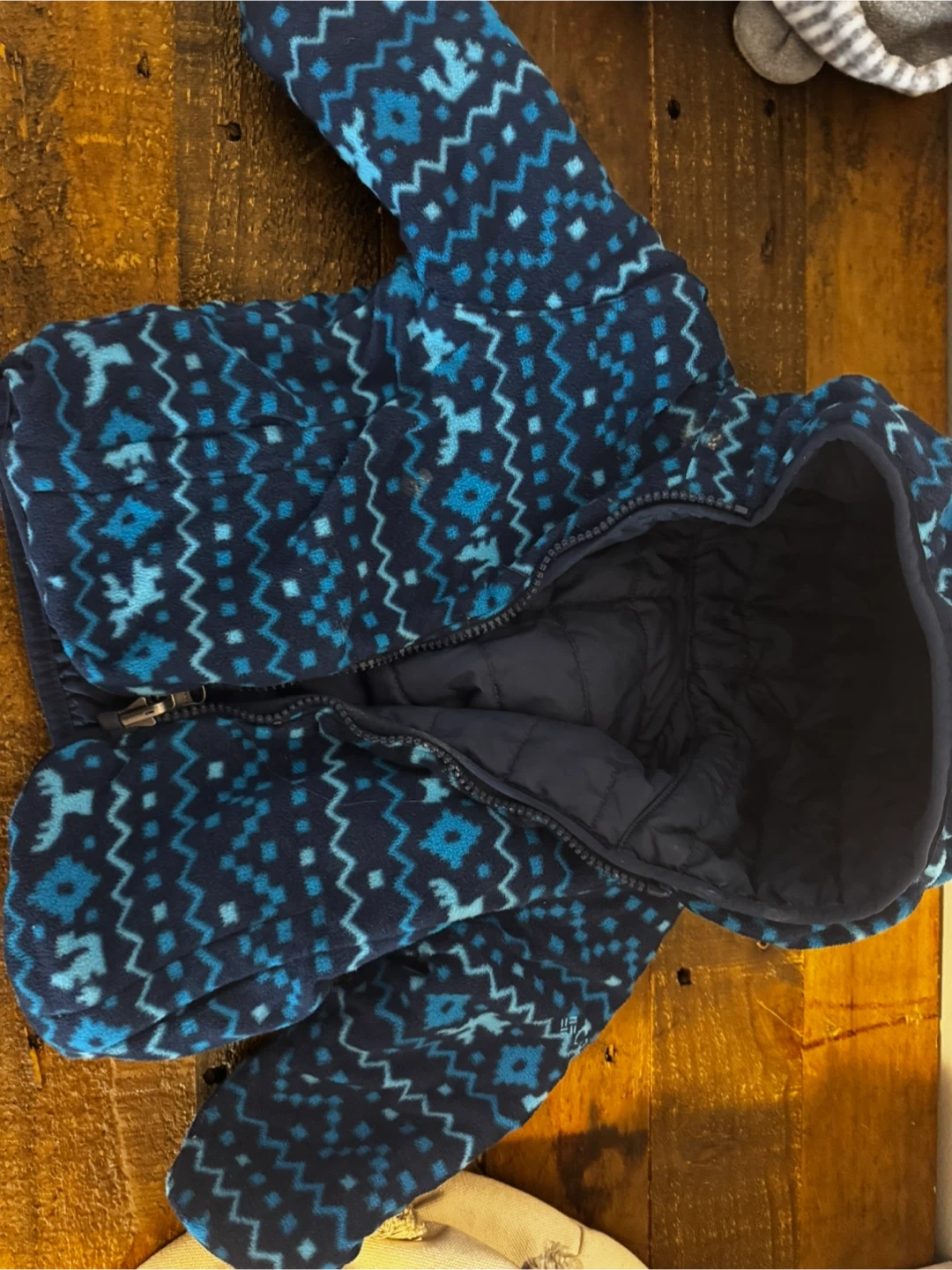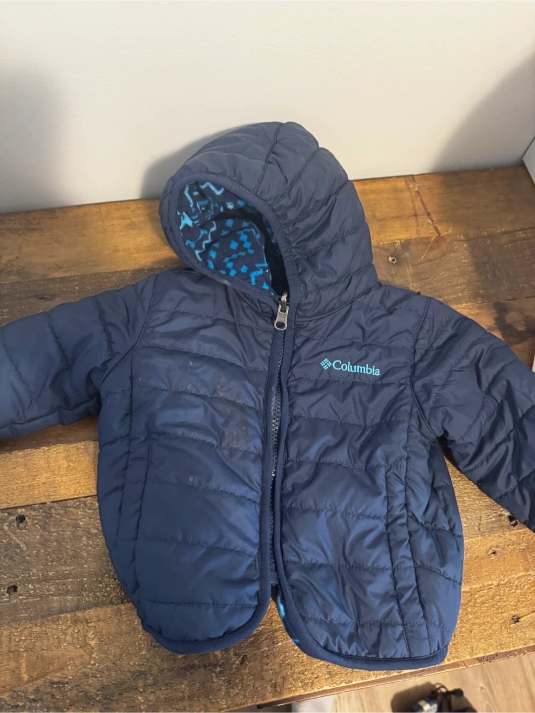 Keep your little one warm with this adorable Columbia puffer jacket! It's in great condition and features a cozy fleece lining with a fun pattern. Perfect for those chilly Canadian days. Size is 12-18 months.