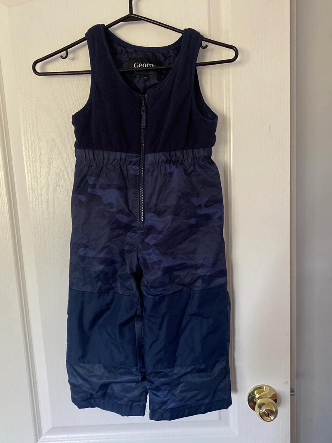Selling a George snowsuit in size 4T! It's in great condition and perfect for keeping your little one warm during the winter months. The snowsuit features a navy blue fleece top and a blue camouflage pattern on the bottom only 30 September
