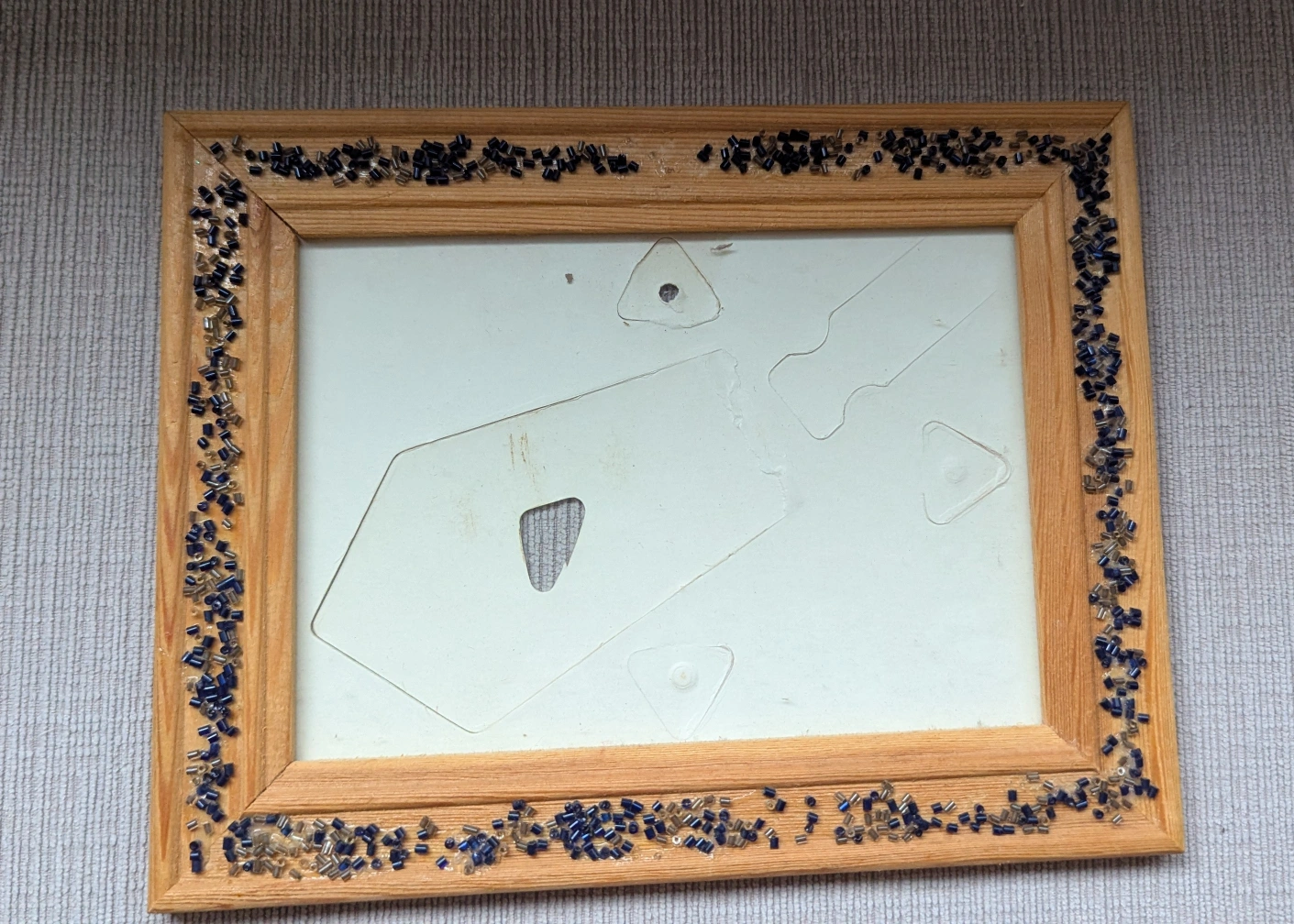 A picture frame from Dollarama, perfect for displaying your favourite memories! It has a wooden frame and is decorated with beads around the edges