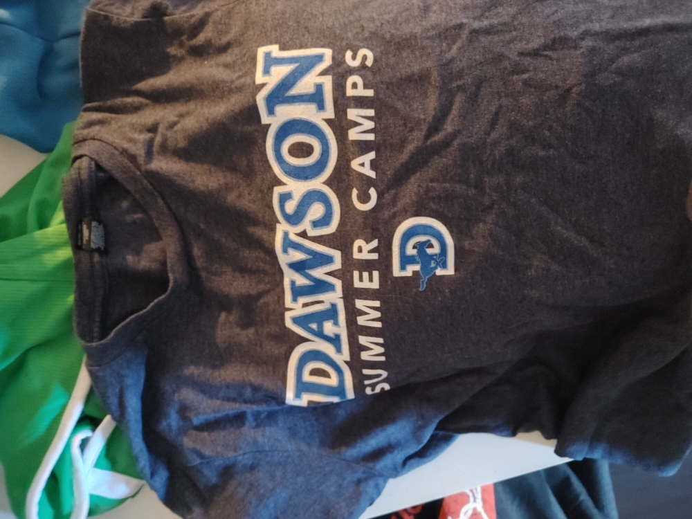 Selling a bundle of 10 assorted t-shirts! Included are shirts with Dawson Summer Camps logo, a soccer design, a Vans tee, and a Champion shirt. They are in a very good condition and ready for a new home. Wrinked after a wash and mostly cotton! Some never worn.