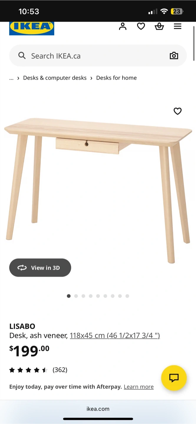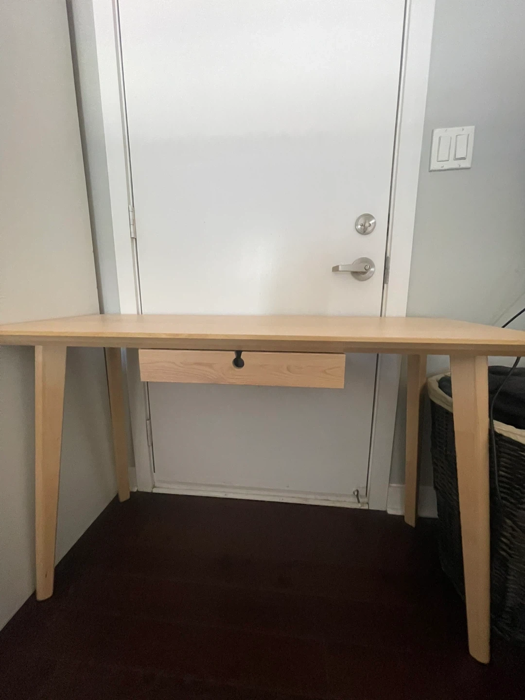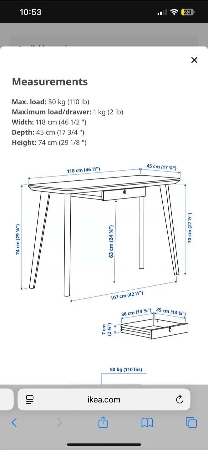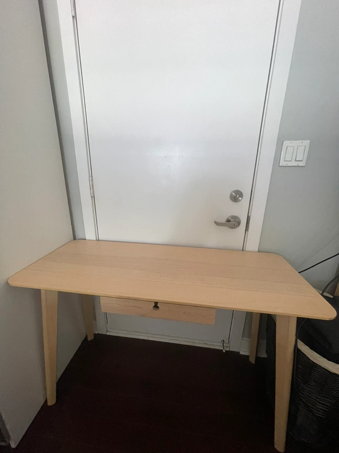 Selling my IKEA Lisabo desk in ash veneer. It's in good condition and perfect for a home office or study space. There is permanent marker on that top as shown in photo. - Dimensions: 118 cm x 45 cm (46 1/2" x 17 3/4") - Max load: 50 kg (110 lb) - Maximum load/drawer: 1 kg (2 lb) Originally bought for $199 at IKEA!