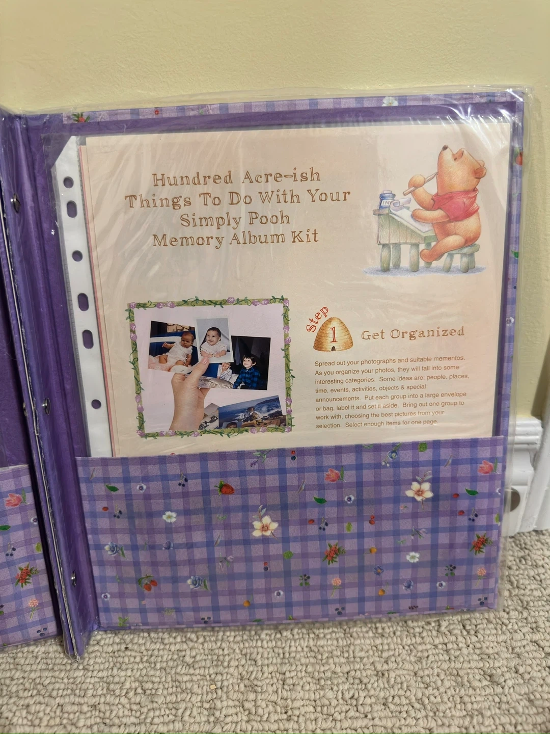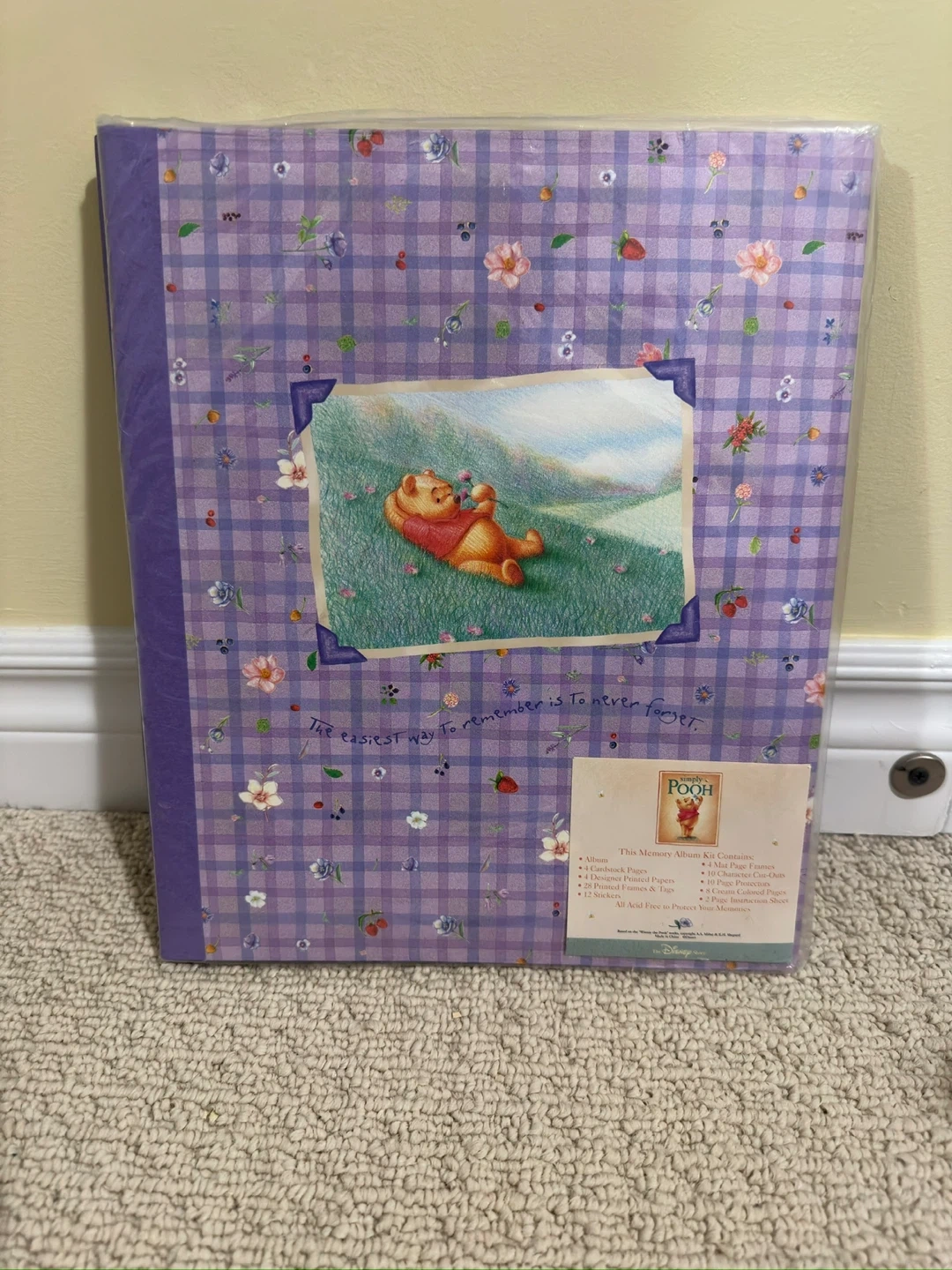 Brand new Winnie the Pooh scrapbook kit! This memory album kit contains: - Album - 48 sheets protected paper - 24 printed sheets - 12 page protectors - 12 page protectors with sheet - Your memories All add fun to your memories! Originally $25