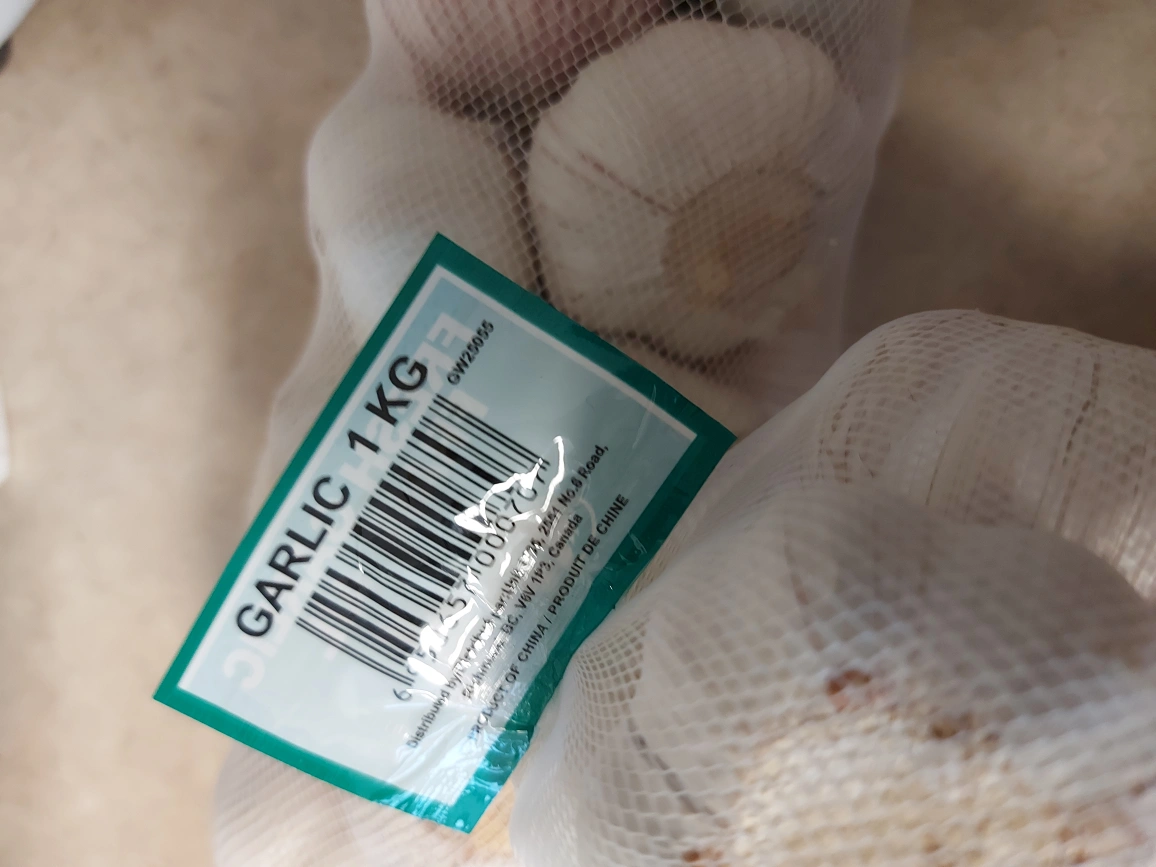 One bag of fresh garlic for sale! Each bag contains 1 KG of garlic- $3.50 each