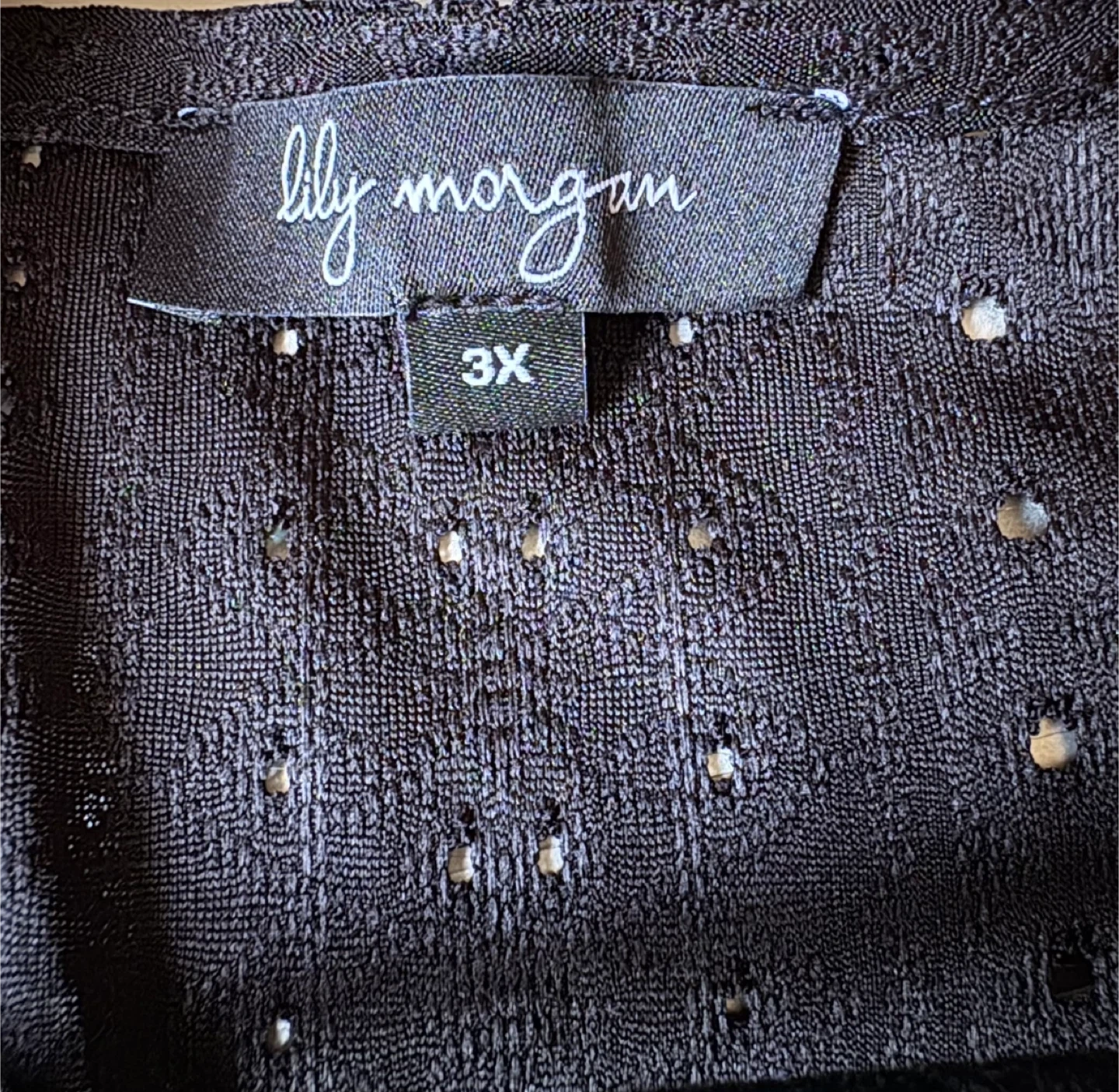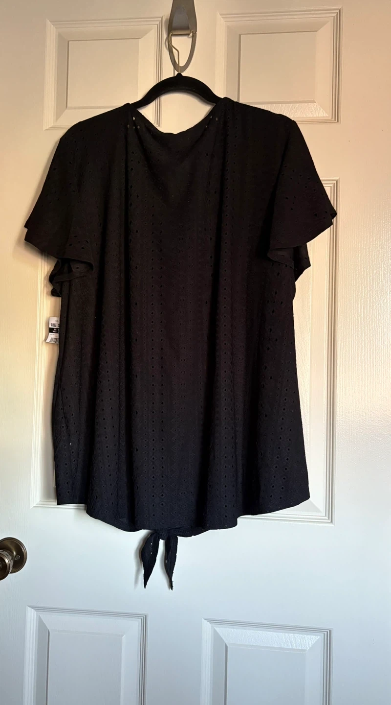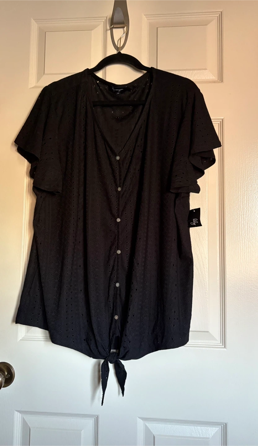 Lily Morgan women’s shortsleeved blouse Size 3X PTP - 25 - 26” Length - 28” New with tags and never used Colour black Features eyelet pattern, front button closure, extra button included, tie front Giftable Cash preferred or etransfer accepted from verified users Shipping options available Porch pick locations: Markham - Markham Rd & 16th Ave Oshawa - Wilson Rd & Adelaide Ave Pls feel free to ask me any questions