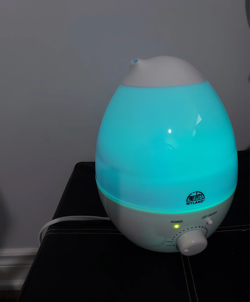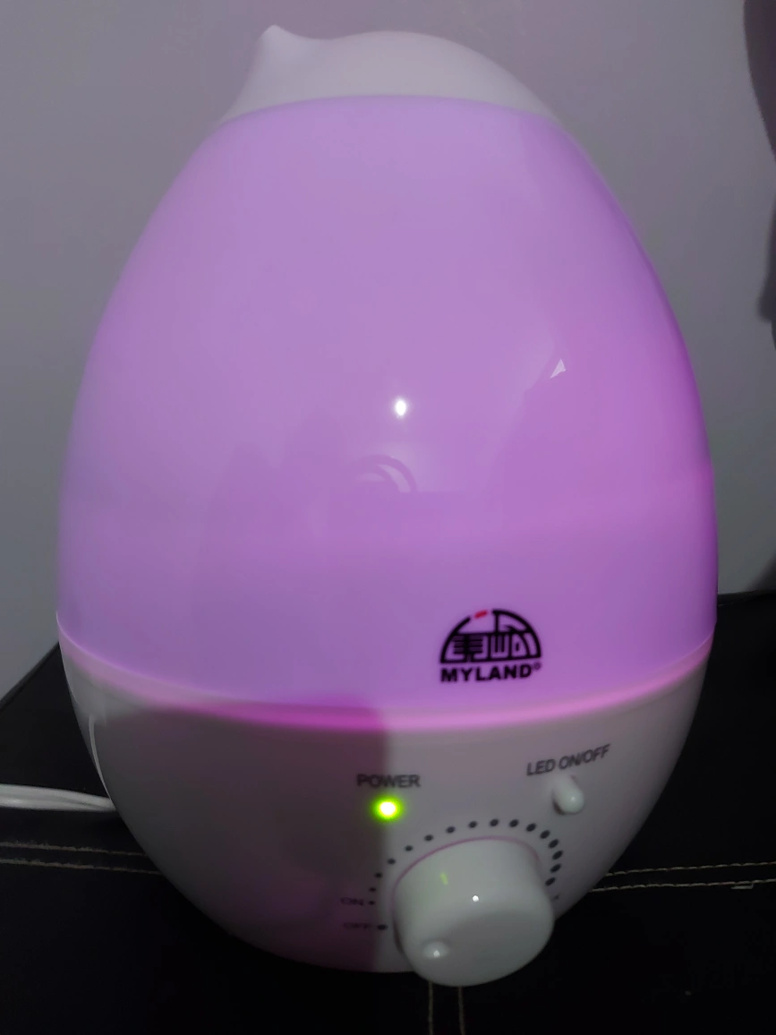 I'm selling a Myland humidifier. It has a power and LED on/off switch. It changes colours too!