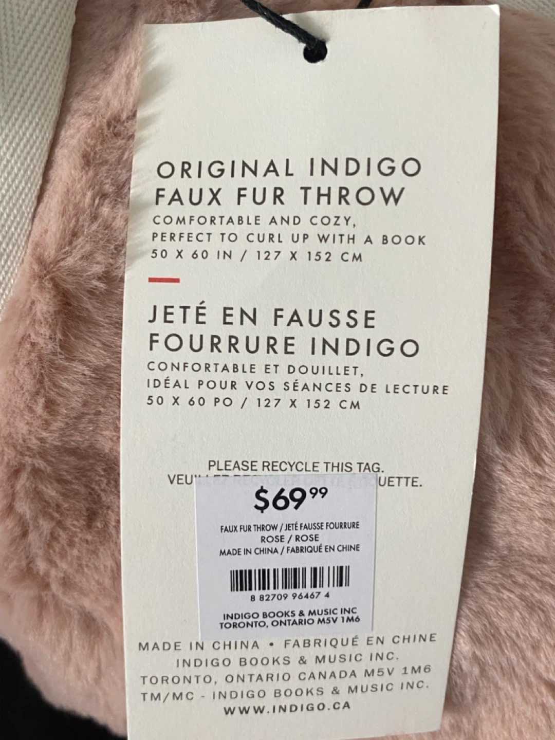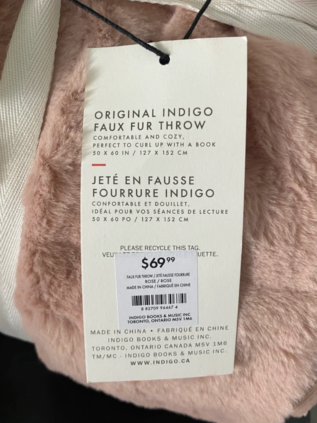 Snuggle up with this super cozy Indigo Faux Fur Throw! It's brand new and still wrapped with the original ribbon. The colour is a beautiful rose. It's the perfect size (50 x 60 inches) for curling up with a good book. Originally bought for $69.99 Cash and pick up only, Cawthra and Lakeshore area in Mississauga.