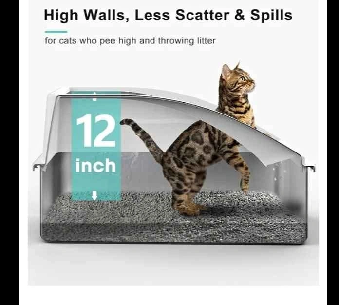 Stainless Steel Litter Box | XL Enclosed Cat Litter Boxs with Lid for Big Cats | High Sided, Anti-Urine Leakage | Non-Stick Bottom & Includes Litter Mat & Metal Scoop Niagara falls or grimsby pickup