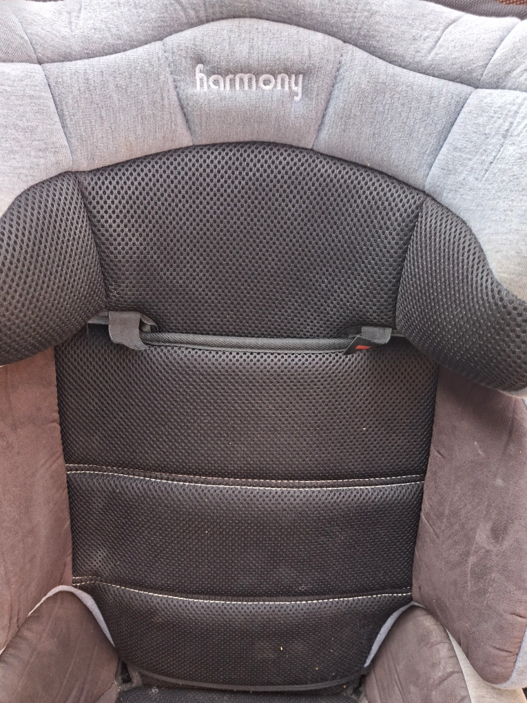 Selling a Harmony car seat in good condition. It features a grey and black design with a comfortable mesh back. Perfect for keeping your little one safe and secure on the road!
