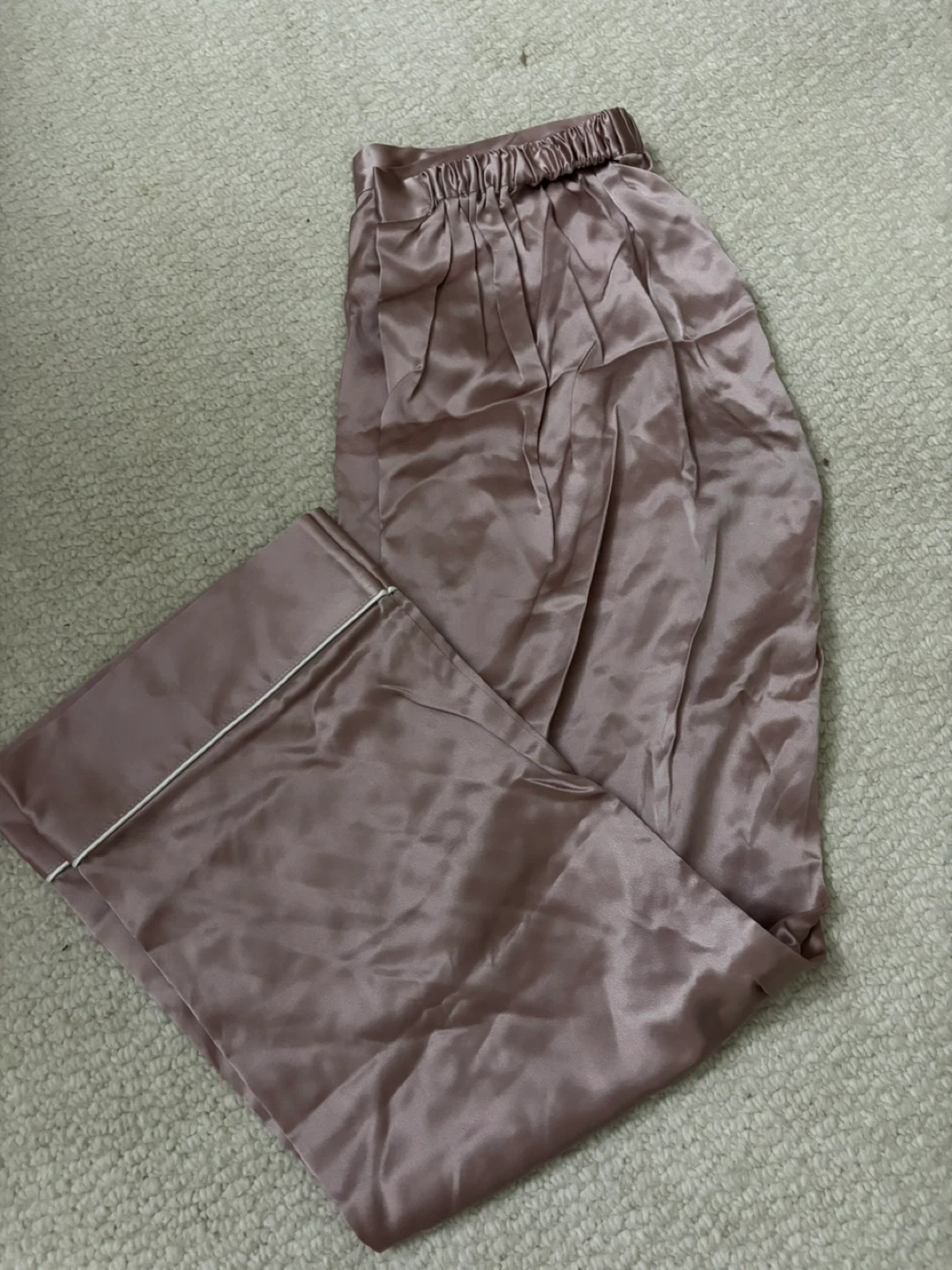 Selling a pair of Silk Laundry silk pants in a beautiful pink colour! The size is 4-6 (US). These pants are super comfortable and perfect for lounging around the house or wearing out. They're in great condition and ready for a new home