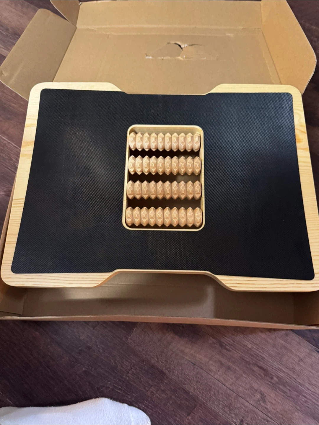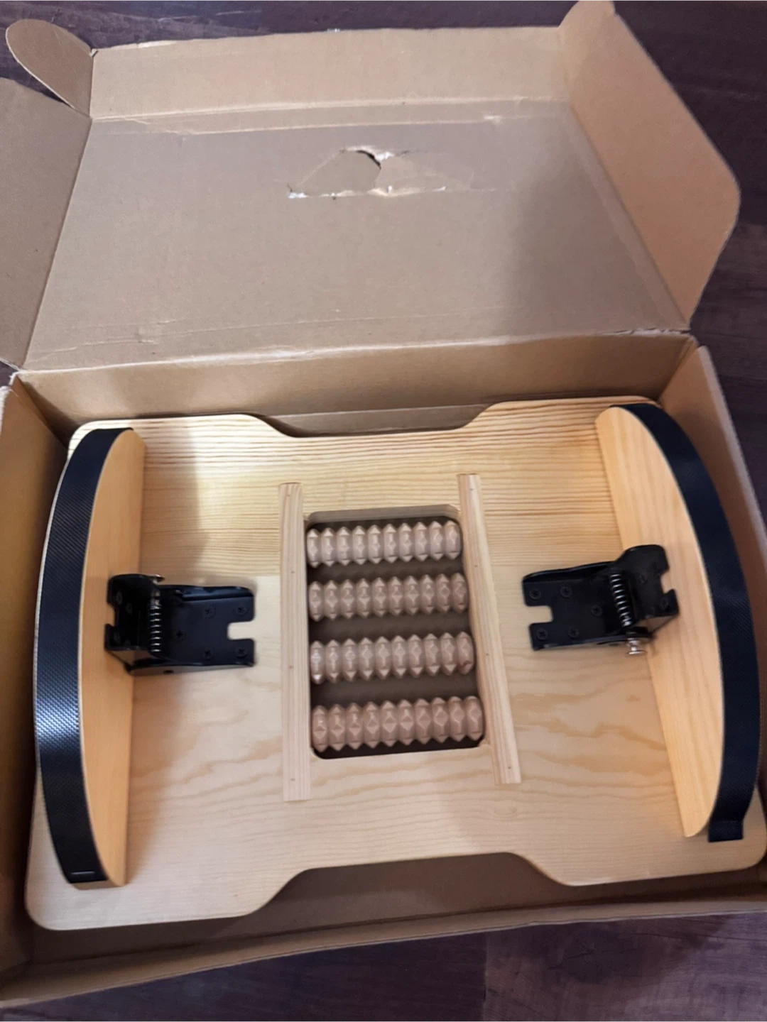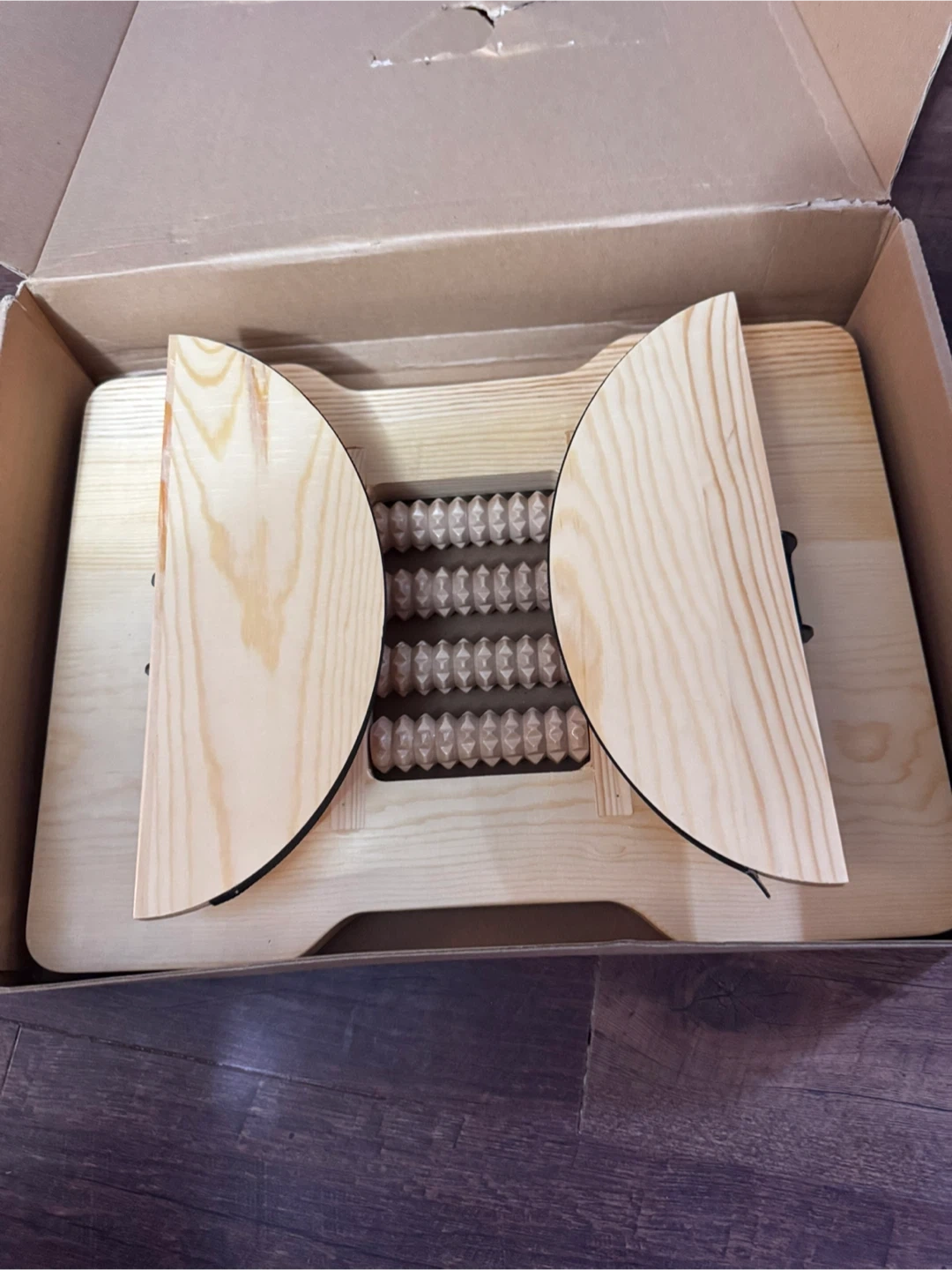 Selling a foot roller massager! It's made of wood and has a roller in the middle. It comes with the box.