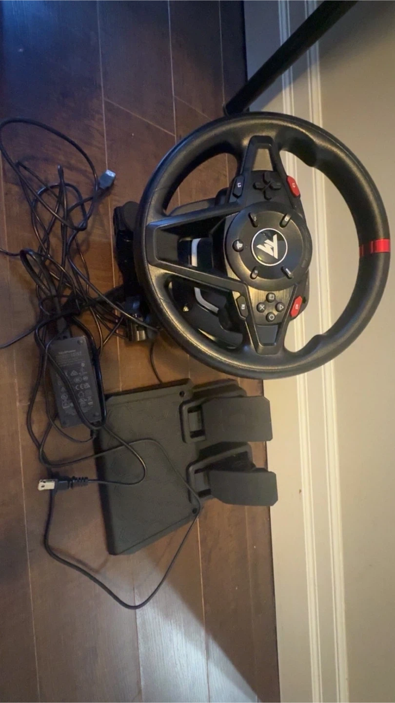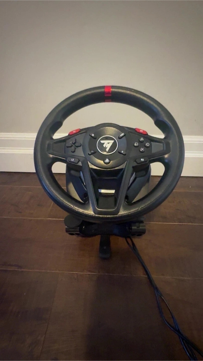 Thrustmaster T150 racing wheel for realistic racing simulation. Includes wheel and pedals, ready to plug and play for your favourite racing games!