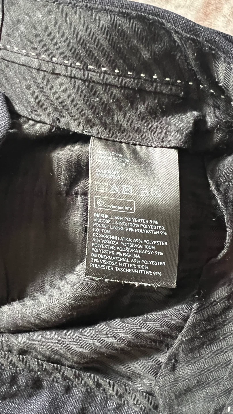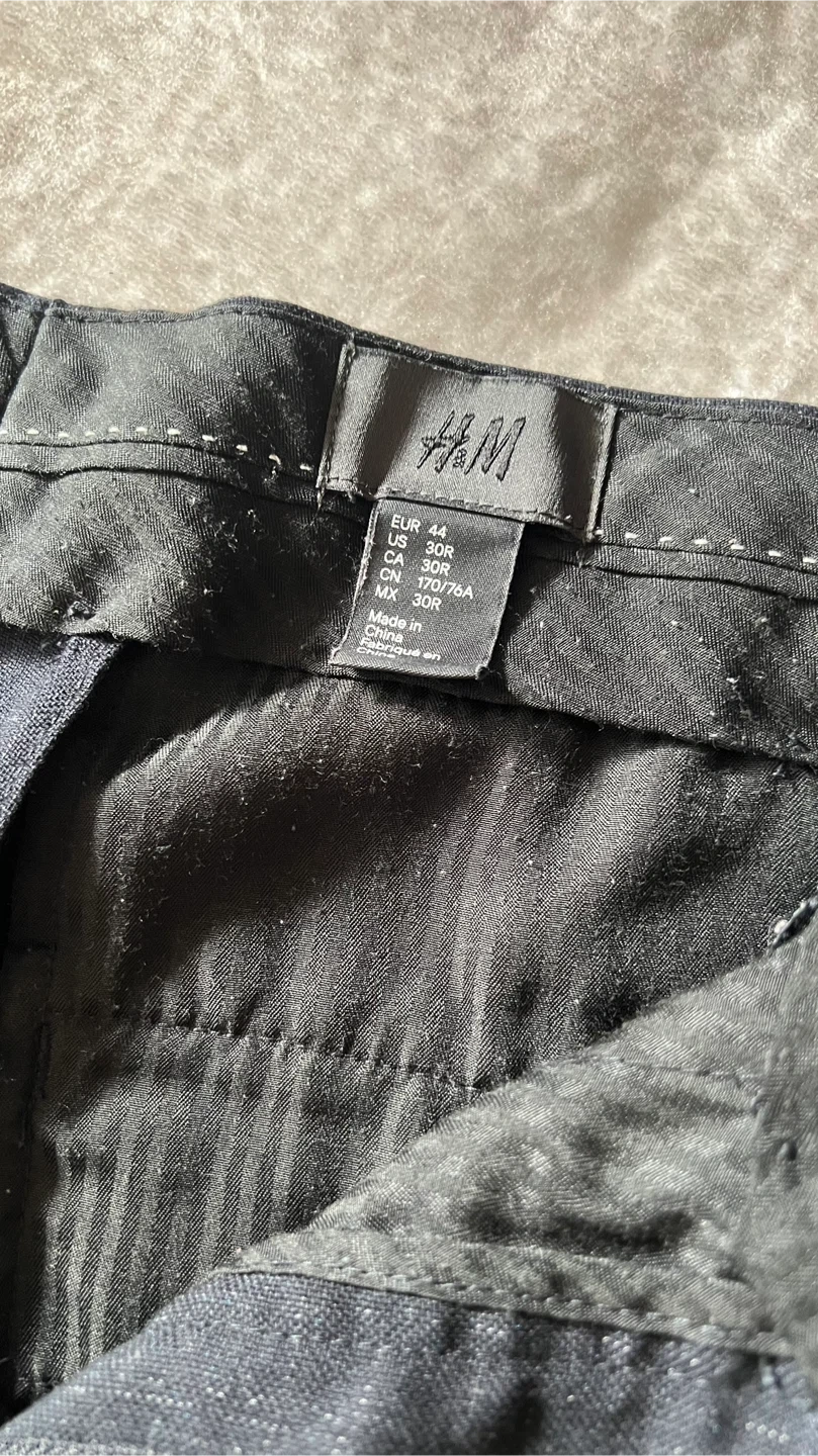 Selling a pair of H&M black pants in size 30R. The material is 69% polyester and 31% viscose. Great for everyday wear!